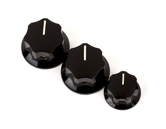 Set of 3 knobs for Jazz Bass-style potentiometers, also compatible with other models.