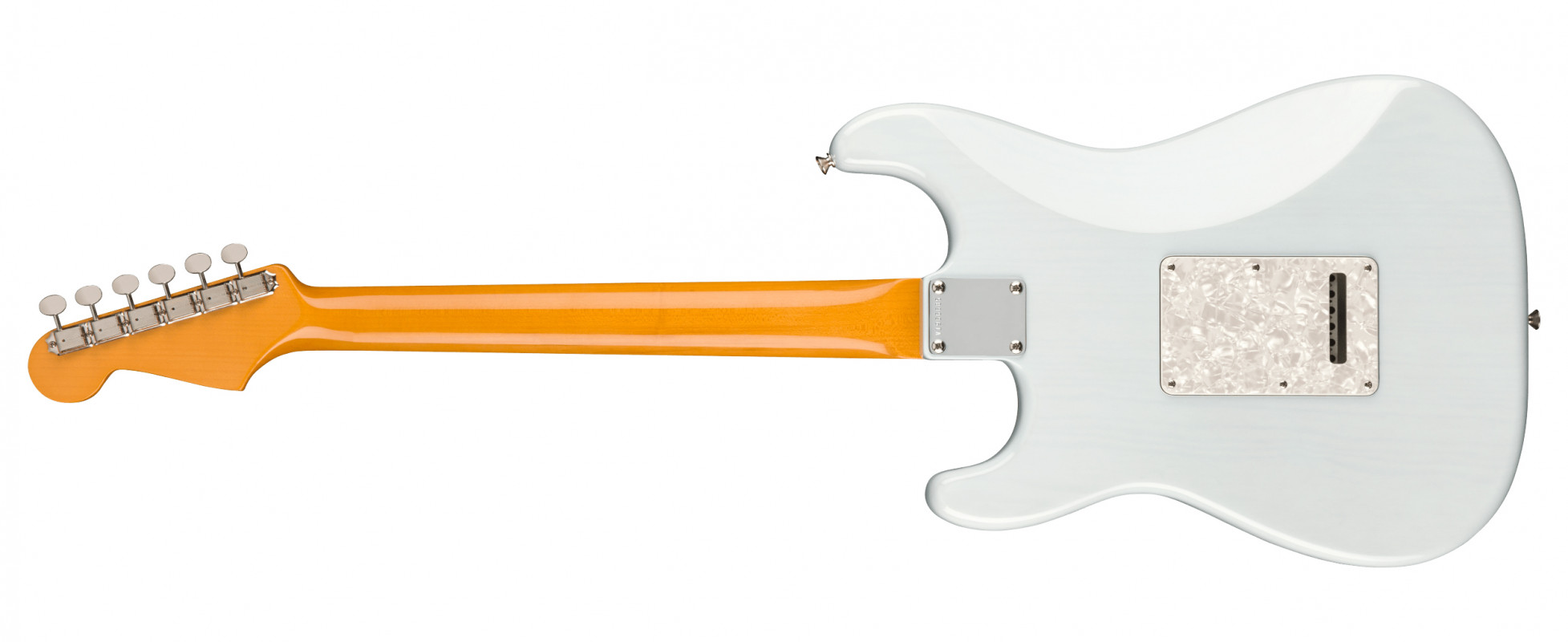 The Kenny Wayne Shepherd Stratocaster features a chambered ash body for vibrant and resonant tone, while the Transparent Faded Sonic Blue lacquer finish highlights the beautiful ash grain. The early ‘60s inspired “C”-shaped maple neck and bound rosewood fingerboard—with a 7.25” radius—offer comfort and playability straight out of Fender’s golden age. Loaded with three Kenny Wayne Shepherd custom pickups, this guitar delivers punchy and full-throated Strat tones.