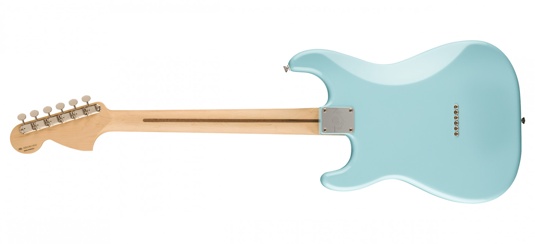 Other standout features of this model include a Hardtail Stratocaster bridge and a Custom Tom DeLonge Neck Plate with Tom DeLonge artwork.