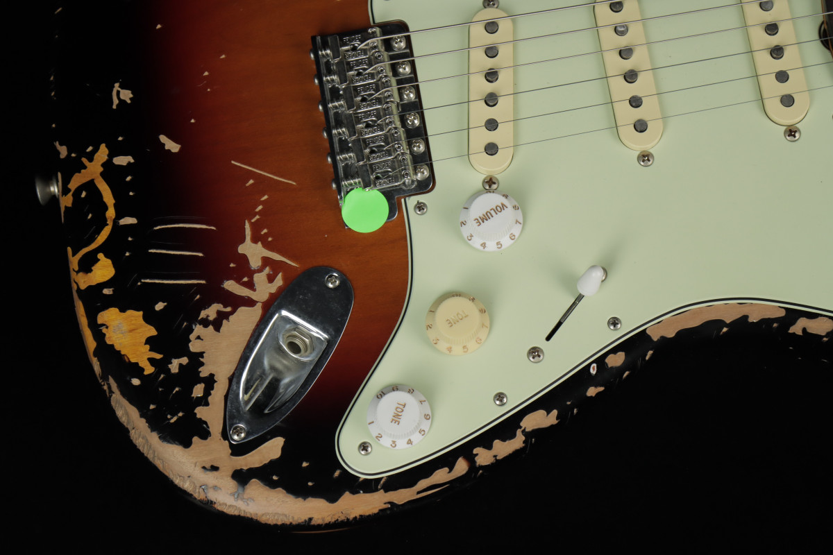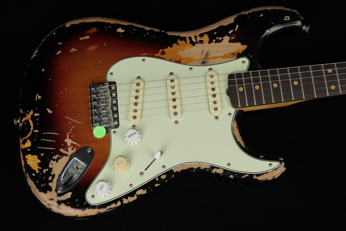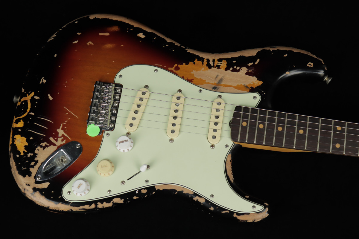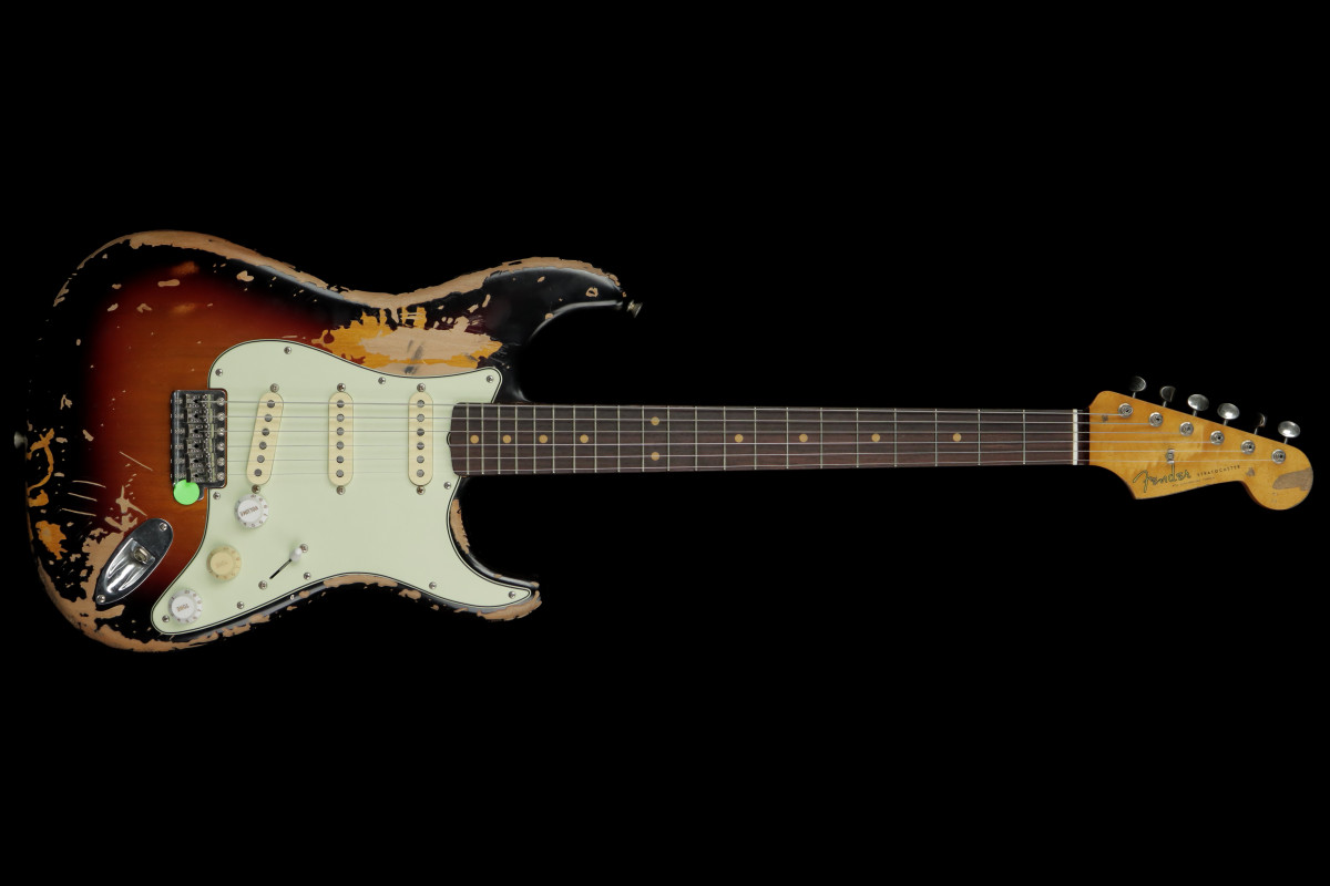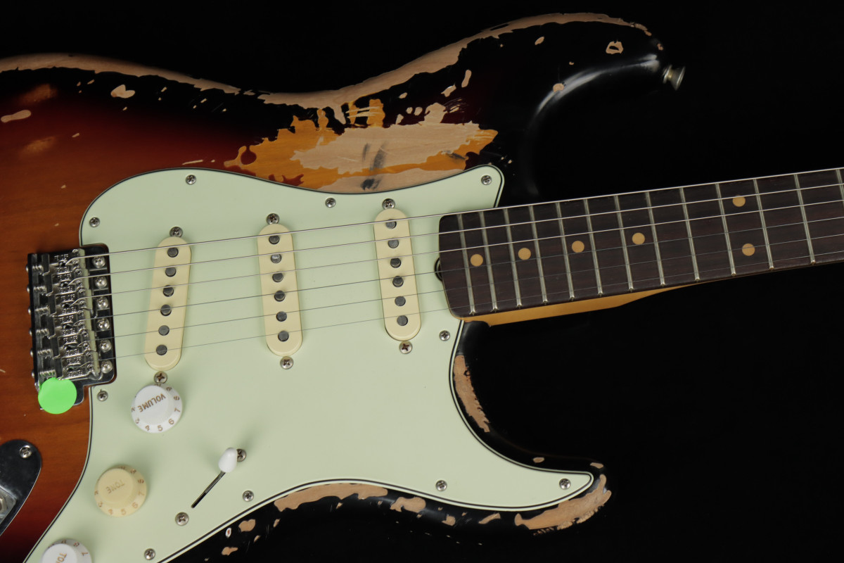 The Mike McCready Stratocaster® features a hand-crafted, heavily Road Worn® lacquer finish over an alder body, recreating the battle scars Mike's own Strat has earned over three decades of grueling, sold-out tours and legendary performances. The comfy 9.5" radius slab rosewood fingerboard on a slim "C" maple neck are shaped to match McCready's treasured 1960 Strat, while the custom Mike McCready Stratocaster pickups are voiced to replicate Mike's vintage single-coils for the same timeless tone, passion and energy that define his signature sound. The vintage-style synchronized tremolo, bent-steel saddles and cold-rolled steel block ensure the purest Fender tone and performance.
