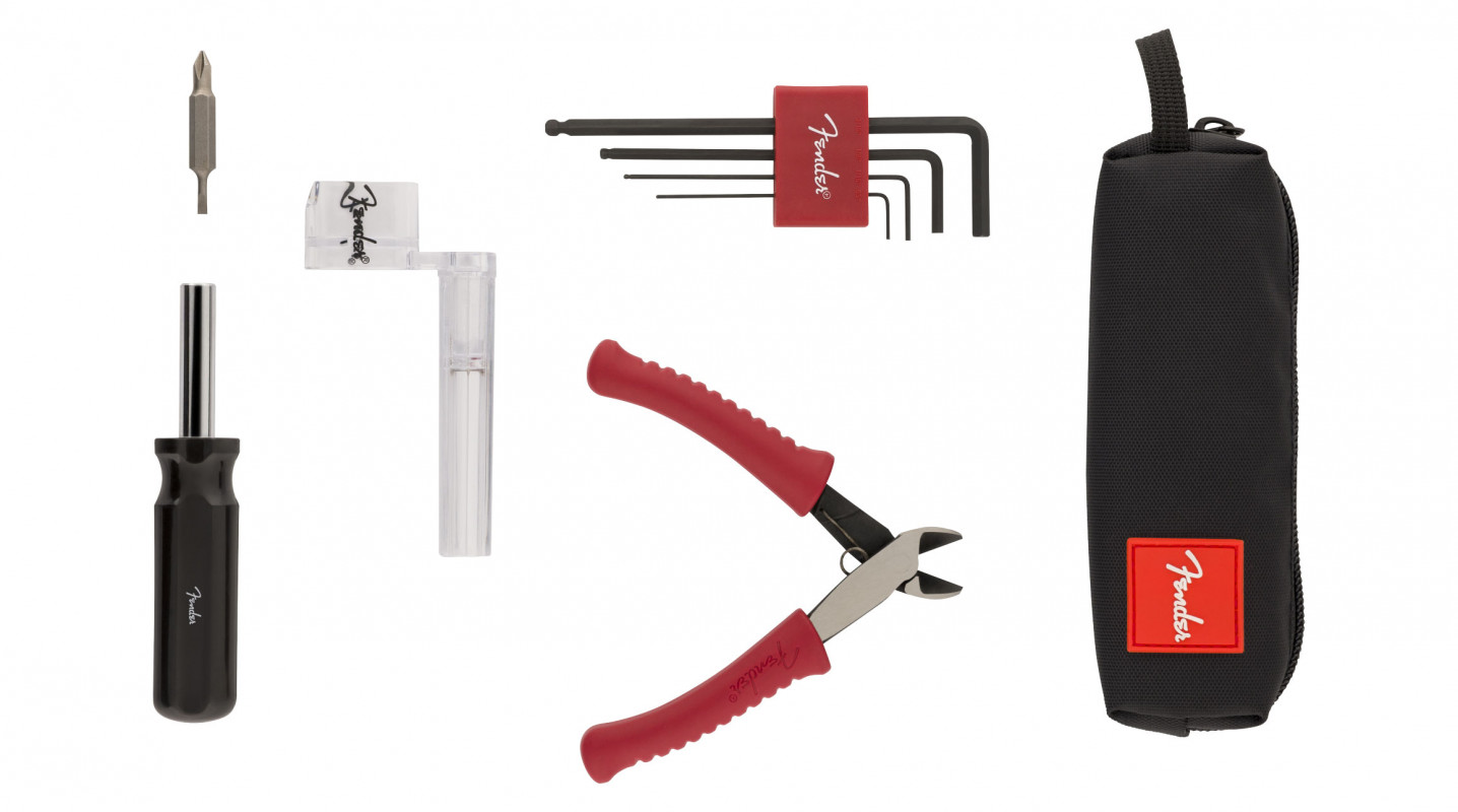 The Fender Mini Tech Kit is designed for guitarists on the go. It includes a string cutter, a string winder, hex keys, and a 4-in-1 screwdriver, providing everything needed for quick string changes and basic adjustments.