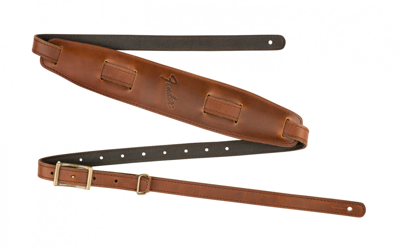 Characterized by a smooth, high-quality leather top and a soft padded leather backing, the Mustang™ strap is a modern take on the classic vintage Fender design.