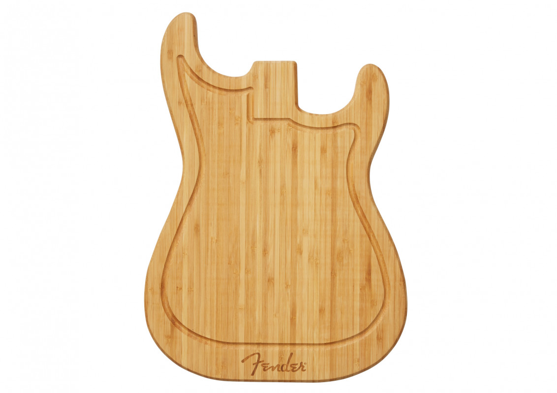 This cutting board, inspired by the timeless design of the Stratocaster, is made entirely of bamboo.