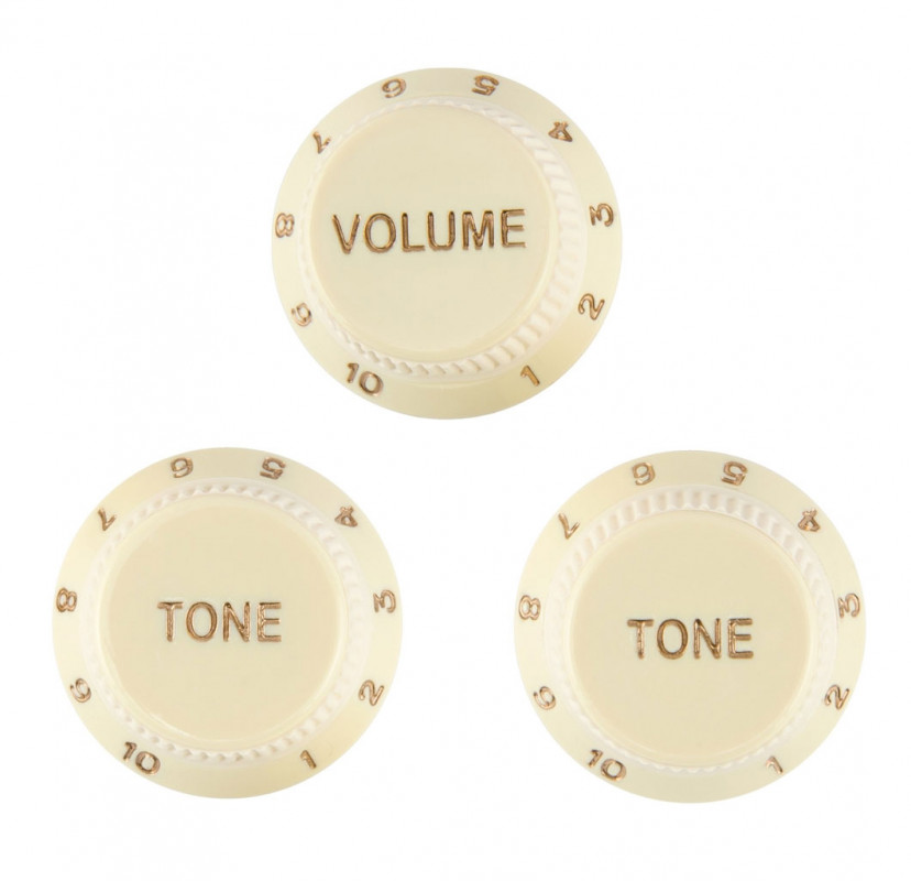 Set of 3 rubber knobs for potentiometers (2 tone and 1 volume) for Stratocaster. Standardly equipped on American Elite Stratocaster models.