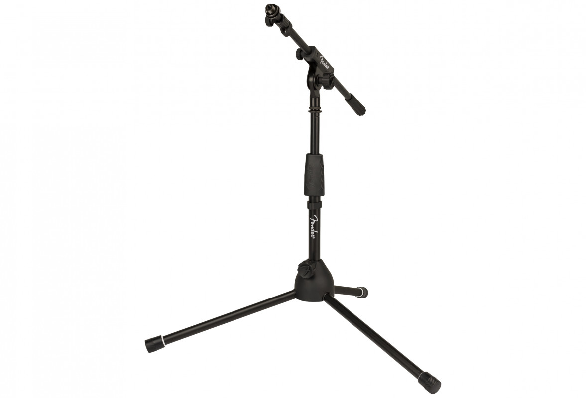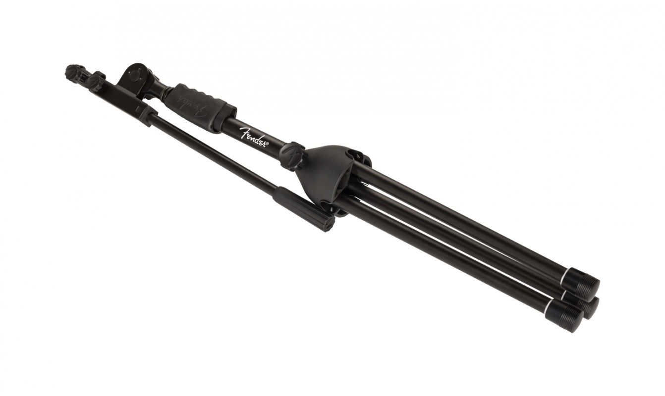 Featuring a robust telescoping giraffe arm and a tripod base, the Amp Microphone Stand is engineered to ensure stable microphone positioning at all adjustment levels, perfect for long-lasting performances and practice sessions. Lightweight and foldable, this stand meets a wide range of mic-ing needs. The handle components embossed with Fender's "F" logo and the specially designed swivel height adjustment lock allow for quick setups on stage and in the studio.
