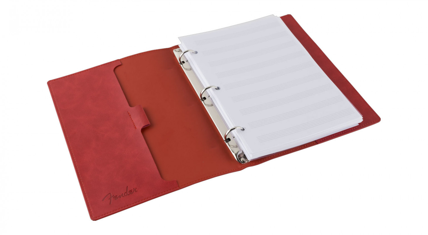 Designed for musicians and creators, the Fender™ Dakota Red vegan leather notebook combines style and function with a finish that is as bold as it is iconic.