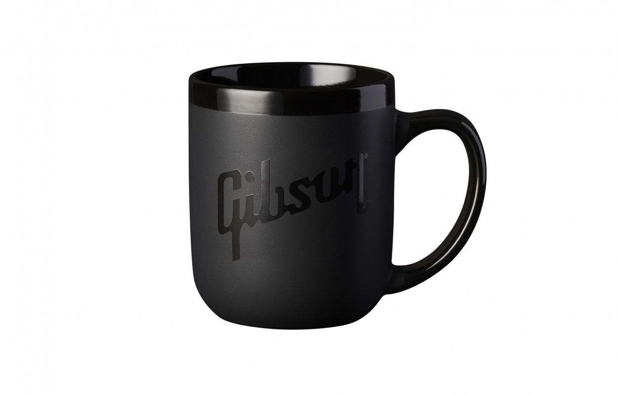 A fantastic gift idea for fans of the Gibson brand. A ceramic mug featuring the Gibson logo, in a sleek all-black design.