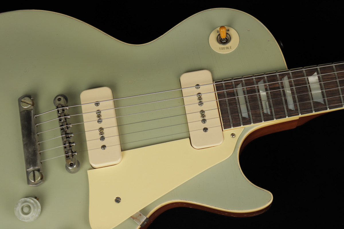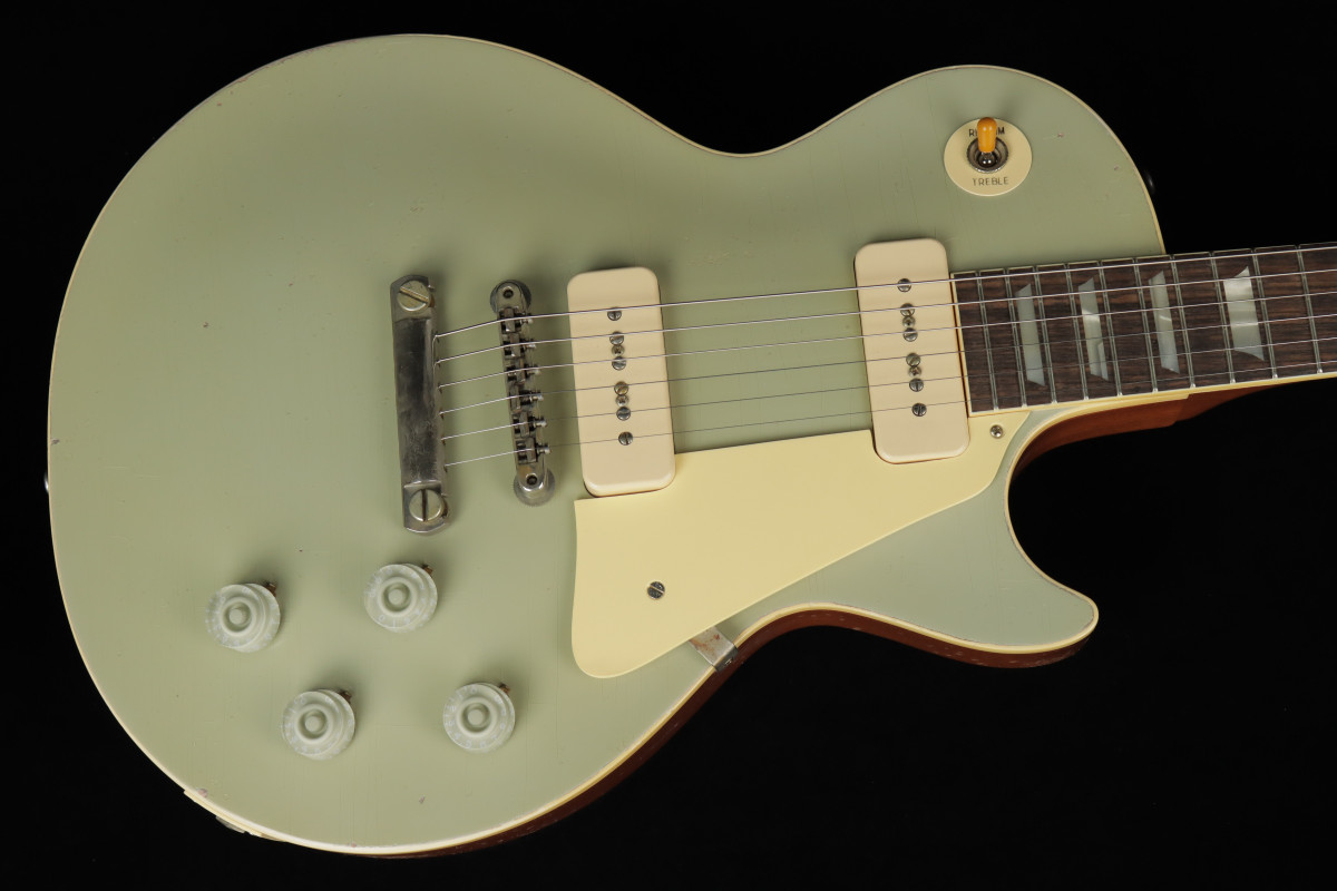 At the NAMM Show in 1955, held in Chicago, IL, Gibson presented five distinctive models of Les Paul, each finished in one of five special metallic finishes inspired by the automotive finishes of the era: Samoa Beige, Copper Iridescent, Nugget Gold, Platinum, and Viceroy Brown. In addition to the special finishes, these guitars were equipped with wireless ABR-1 Tune-O-Matic™ bridges and Stop Bar tailpieces. These bridges were first introduced on the Gibson Super 400 in 1953 and used on the Les Paul Custom of 1954, but they made their first appearance on a standard Les Paul model with the five guitars showcased at the NAMM Show in 1955. These instruments, with their unique design and significant historical relevance, were produced in extremely limited quantities, and today, the whereabouts of only a few examples are known.