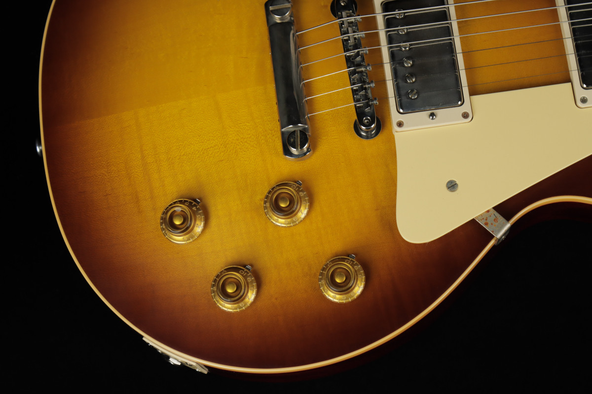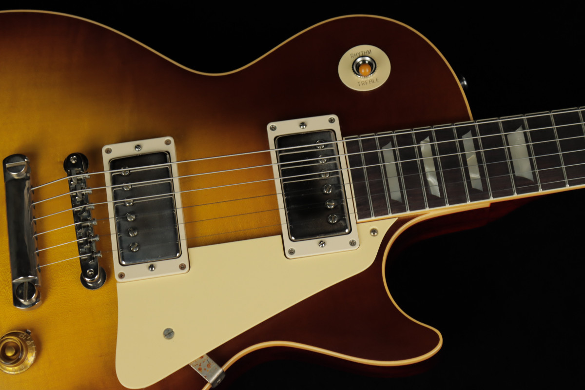 Finally, a special mention to the electronics, which consists of the new Custom Bucker pickups, Alnico III, now offered in an Unpotted version, and a set of Bumble Bee capacitors perfectly identical to the originals.
