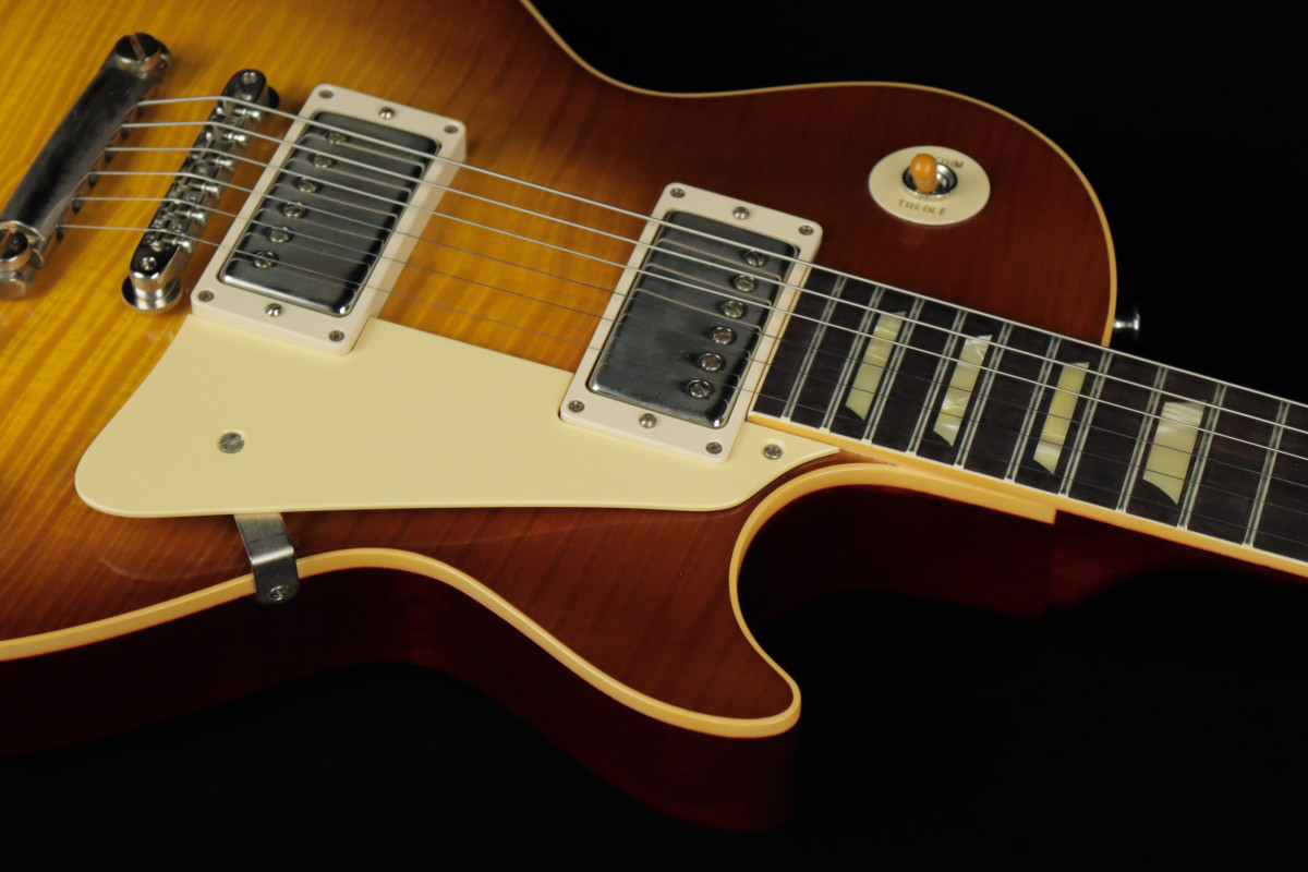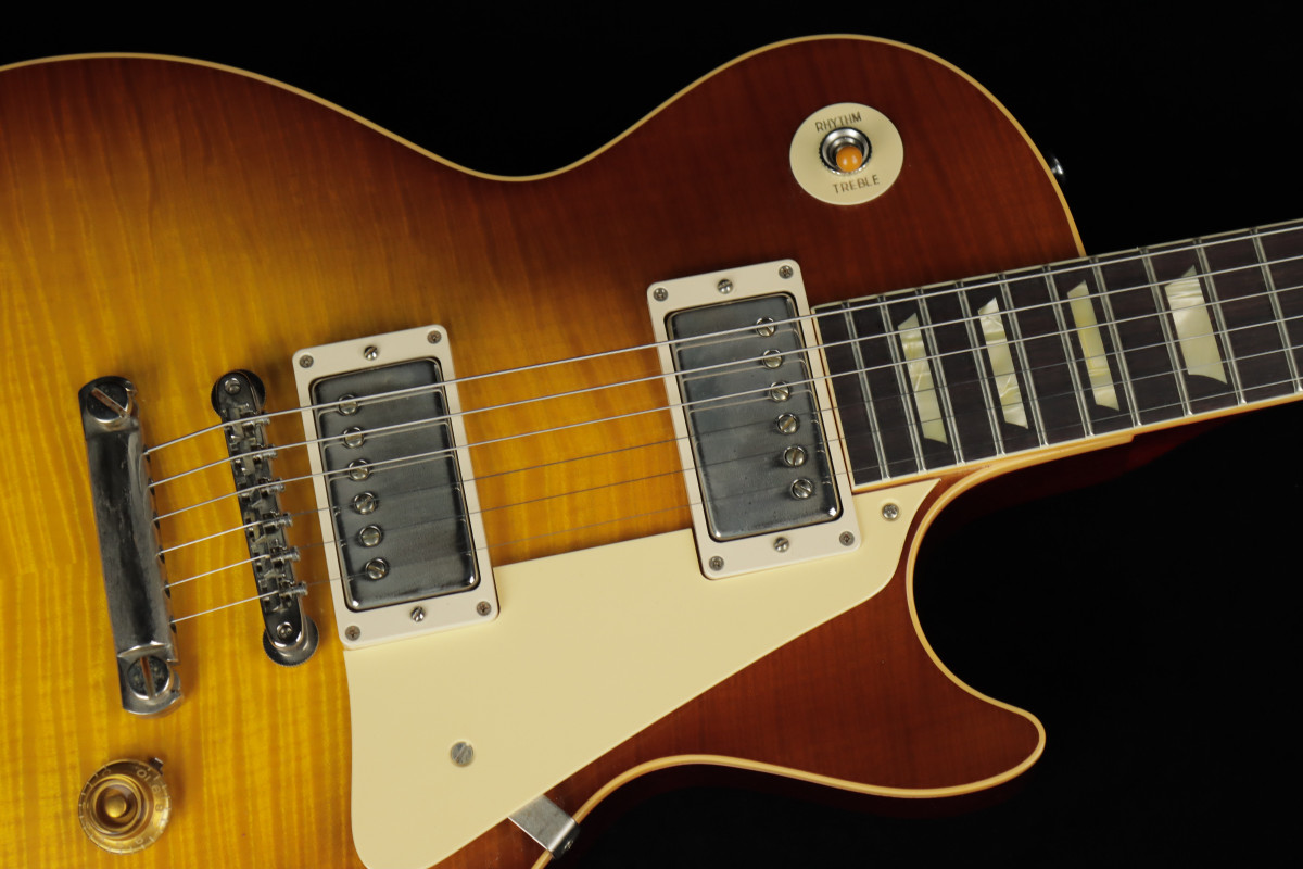 Of course, it is nigh-impossible to make rock and roll music without electricity, so let's talk about the wires within the wood. Each Les Paul comes equipped with two Alnico III Custombuckers, and they are stunning recreations of vintage PAFs. They punch, bark, bite, rasp, and snarl with the best of them, and they have a good balance of richness and clarity. The mids are woody, the highs sing with inimitable sweetness, and the lows are pure sculpted muscle.