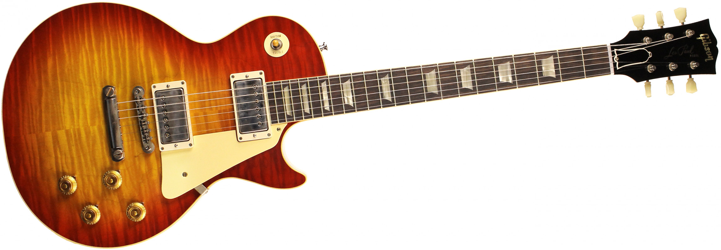 Of course, it is nigh-impossible to make rock and roll music without electricity, so let's talk about the wires within the wood. Each Les Paul comes equipped with two Alnico III Custombuckers, and they are stunning recreations of vintage PAFs. They punch, bark, bite, rasp, and snarl with the best of them, and they have a good balance of richness and clarity. The mids are woody, the highs sing with inimitable sweetness, and the lows are pure sculpted muscle.