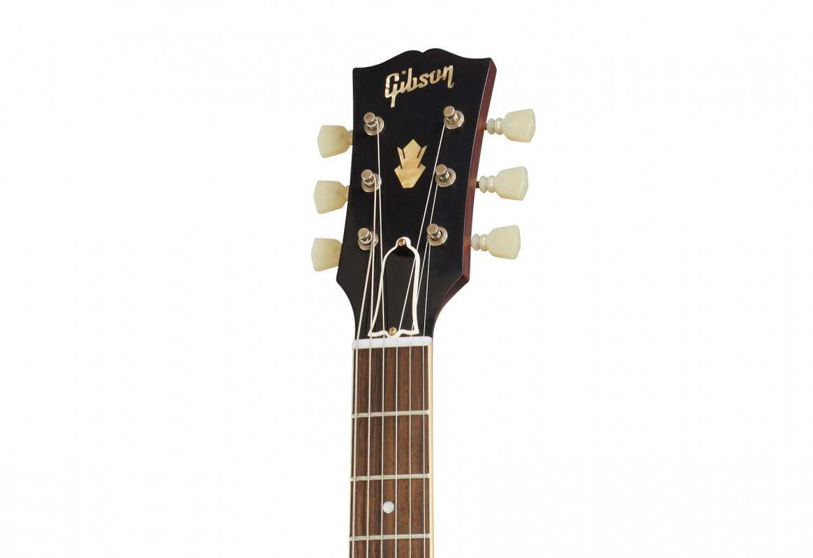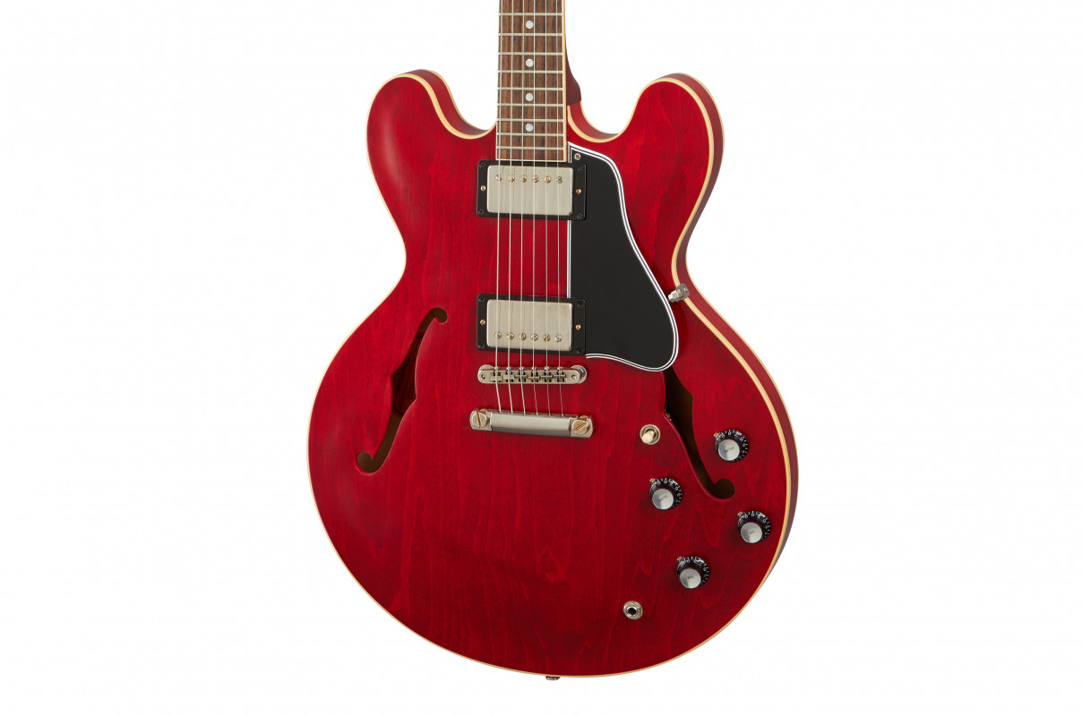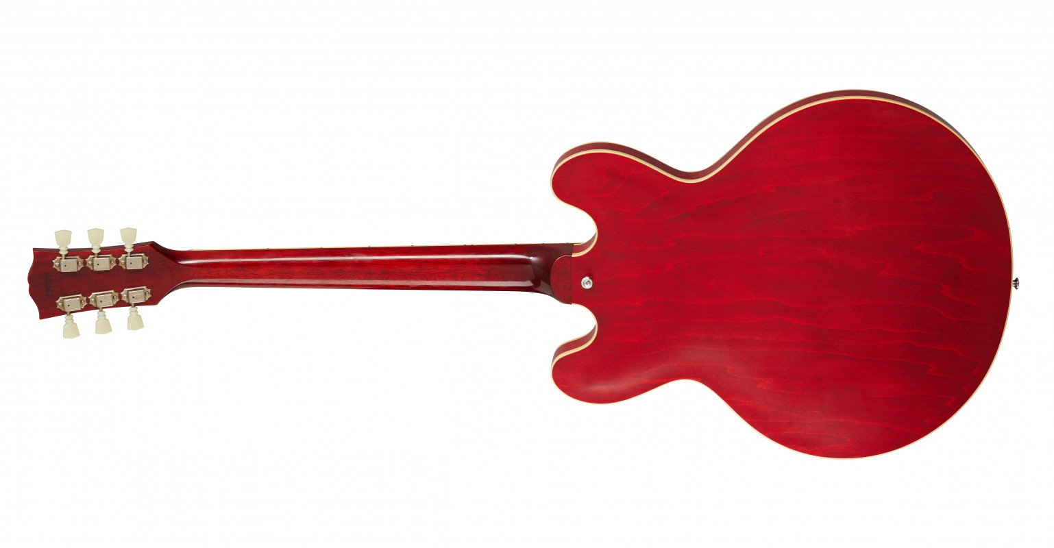 The Historic Reissue ES-335 is back and better than ever thanks to a year of studying, scanning, and listening to original examples. The expert craftspeople at Gibson Custom Shop have rendered every contour, profile, inlay and color of the priceless vintage models in magnificent detail. The result is a playing and ownership experience that will keep you coming back for more. The 1961 Reissue models utilize rounded cutaways, slim-taper neck profiles scanned from originals, dot inlays and vintage-replica parts.
