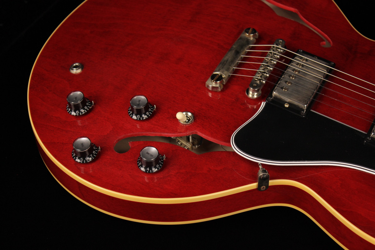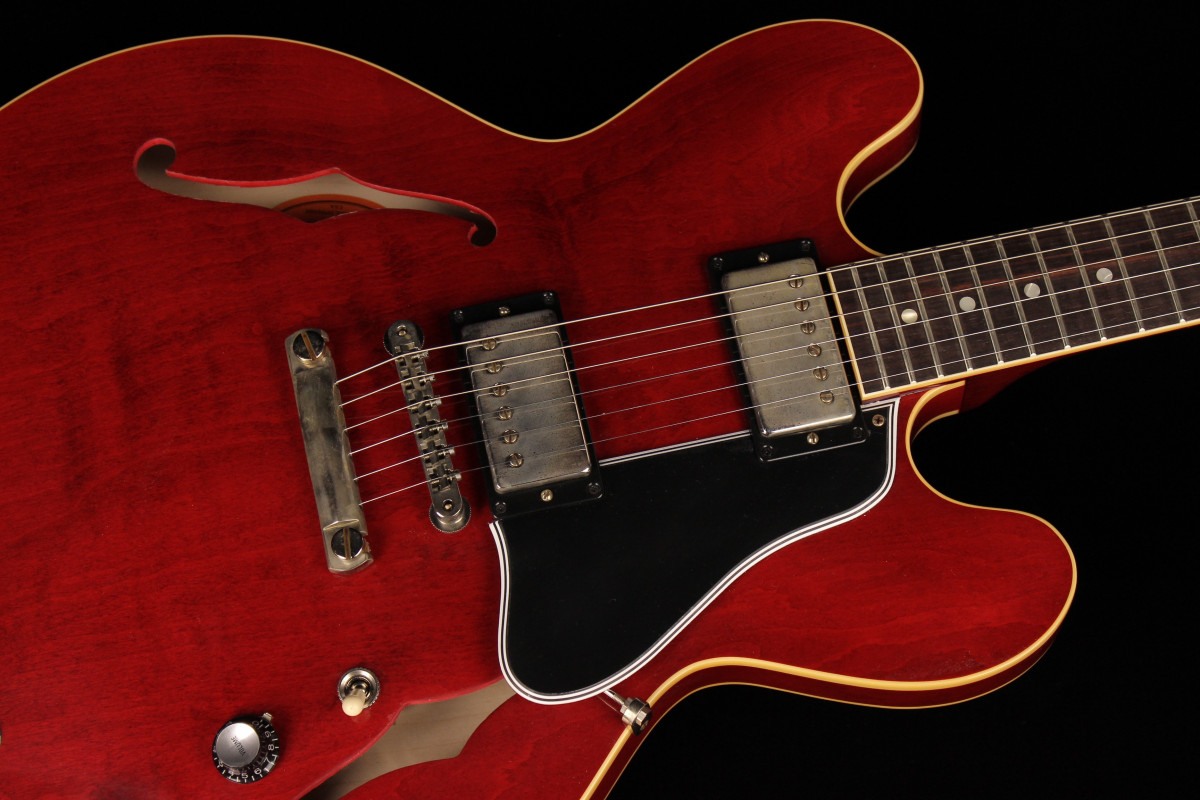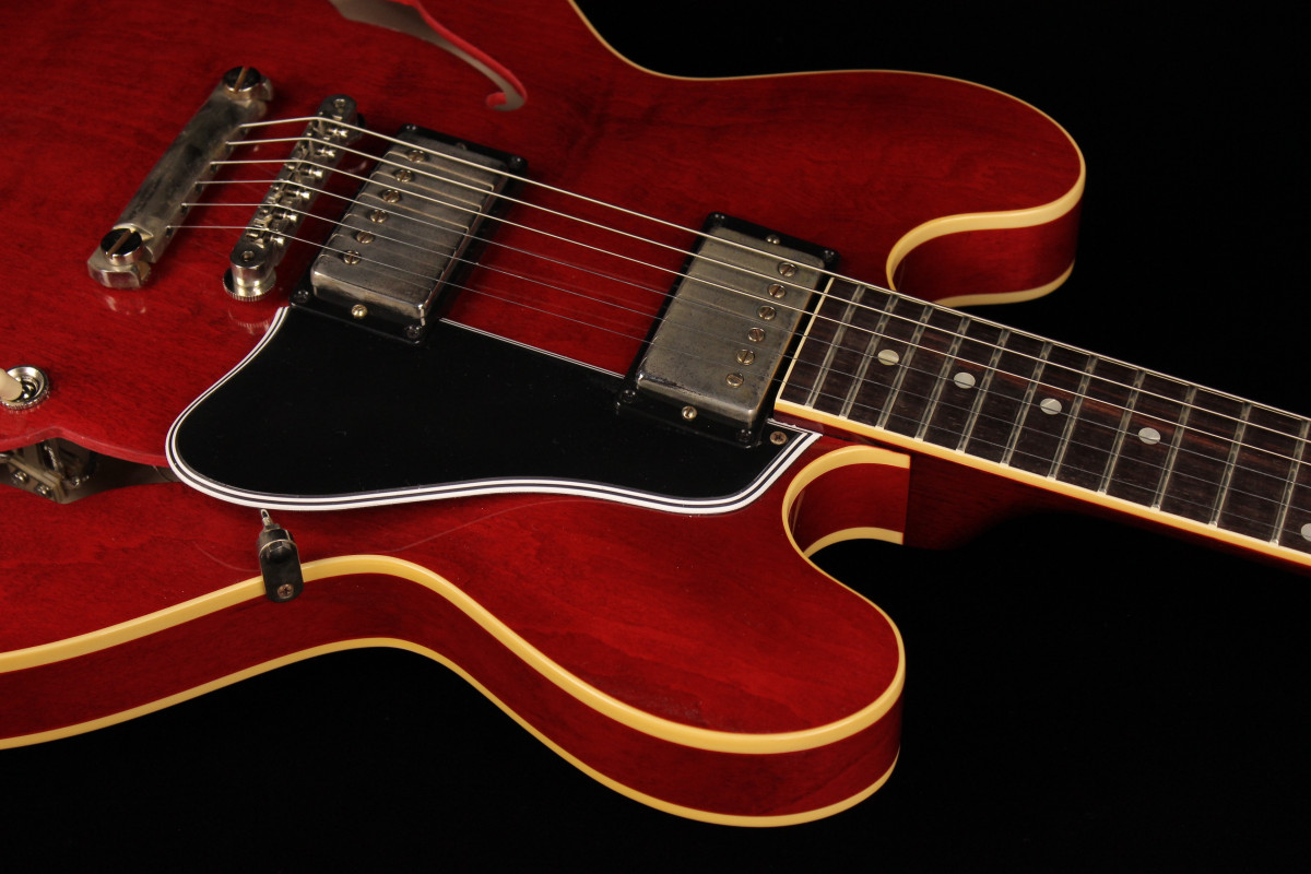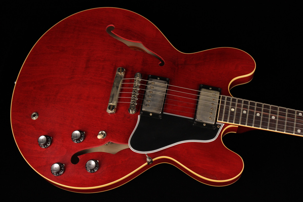 The Historic Reissue ES-335 is back and better than ever thanks to a year of studying, scanning, and listening to original examples. The expert craftspeople at Gibson Custom Shop have rendered every contour, profile, inlay and color of the priceless vintage models in magnificent detail. The result is a playing and ownership experience that will keep you coming back for more. The 1961 Reissue models utilize rounded cutaways, slim-taper neck profiles scanned from originals, dot inlays and vintage-replica parts.