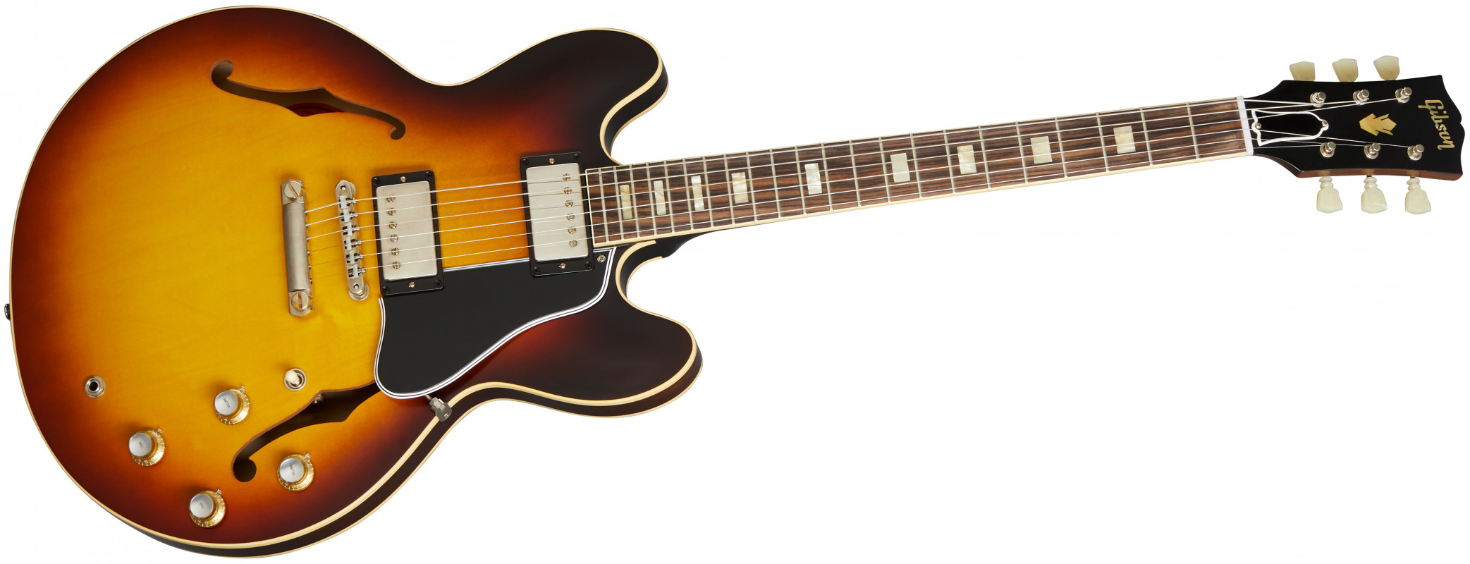 To add some warmth, the ES-335's body is paired with a solid Mahogany neck; topped with an Indian Rosewood fingerboard for a silky feel under the fingers, complete with hide glue fit. The neck adheres to Gibson's ’64 medium C profile, offering just the right amount of grip that’ll keep both traditionalists and contemporary players happy.