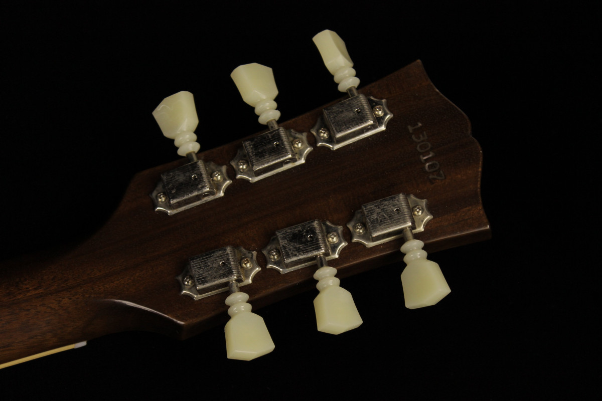The ES-335 is regarded for its elegant semi-hollow body, which allows you to achieve bright and open sounds with plenty of natural acoustic-like volume. Formed from a 3-ply Maple/Poplar combination, these tonewoods give this guitar plenty of vibrancy and top-end definition. The Vintage Petrina nitro VOS finish is the pinnacle of aged Gibson semi-hollows – slick aged looks, smooth feel and resonant sound all in one.
