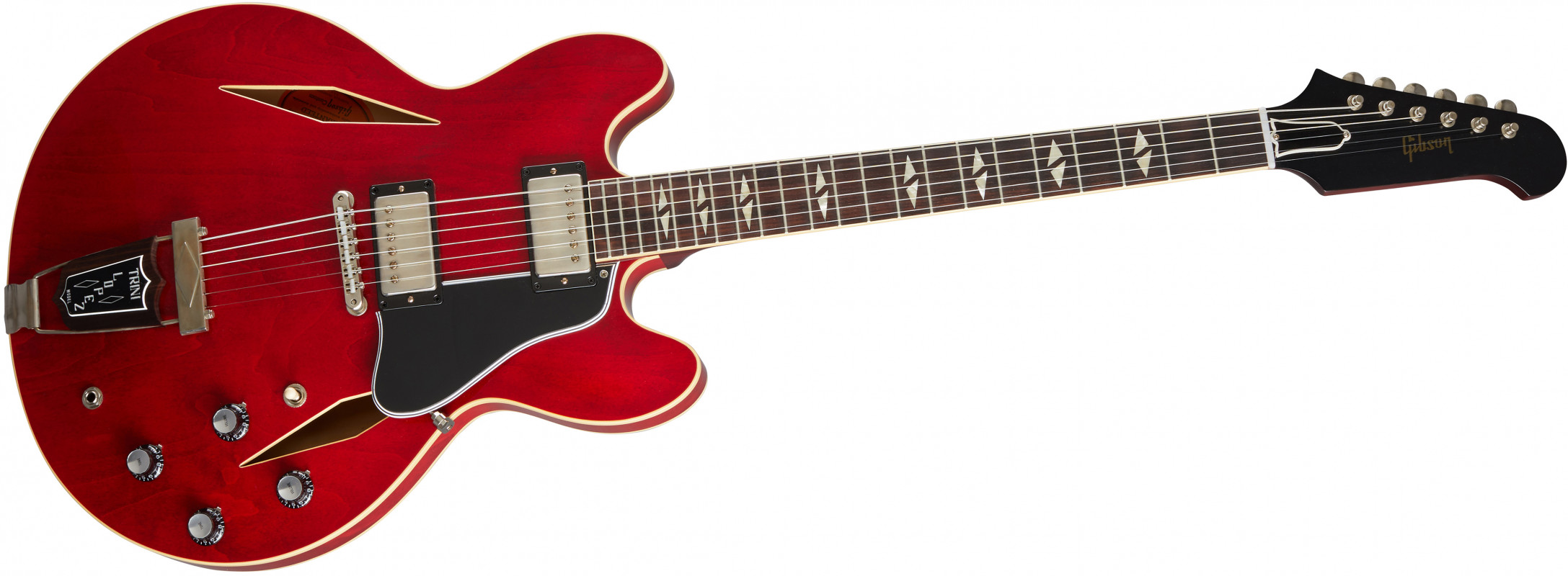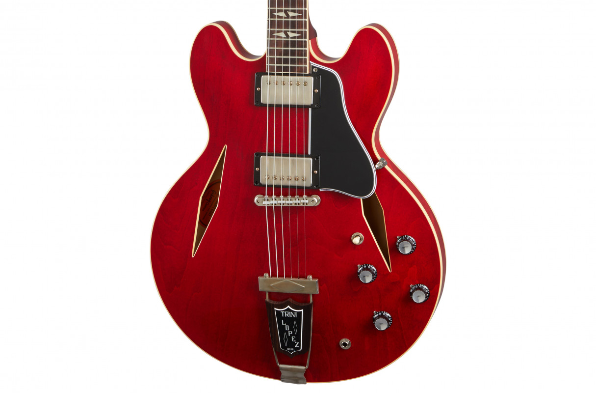 From its chunky ’64-profile neck to its unique trapeze tailpiece, the Gibson Custom 1964 Trini Lopez Standard Reissue VOS delivers the authentic tone, looks, and feel of Trini’s original (and highly collectible) signature guitar. In the design of this amazing semi-hollowbody electric guitar, Gibson’s elite Custom Shop luthiers exhaustively poured through scans and blueprints of the coveted originals to give you an instrument, as a ’60s Gibson advert stated, “… as exciting as the young performer who helped create it”.