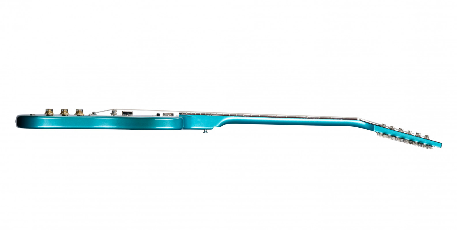 This reproduction of the highly sought-after 1965 model stays true to the guitar that inspired it, with a key enhancement: a neck width of 1 11/16" instead of the narrower neck found on the original. It features the classic color palette of the 1959 Oldsmobile, which inspired some of Gibson's historic custom color tones, culminating in the stunning Aqua Mist VOS finish.