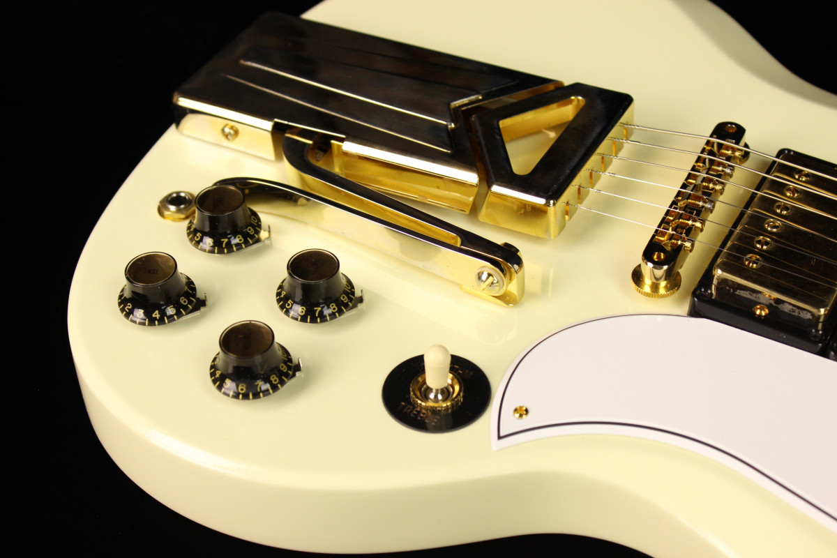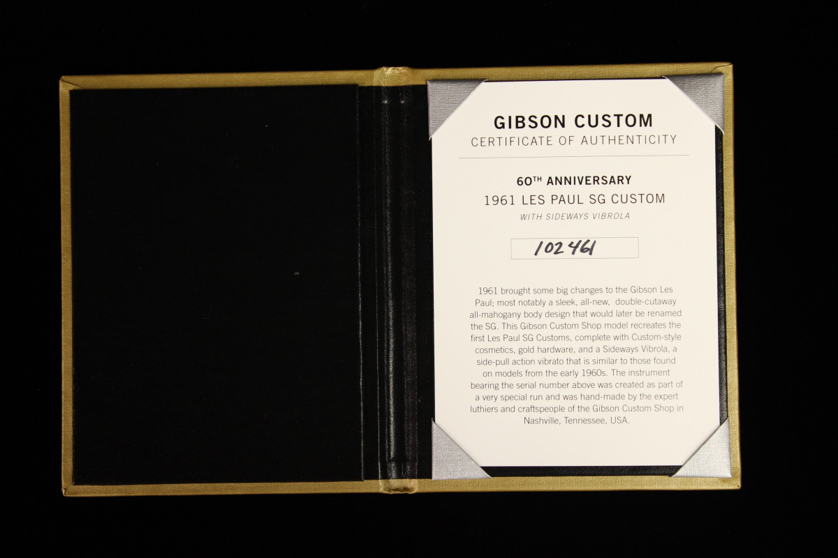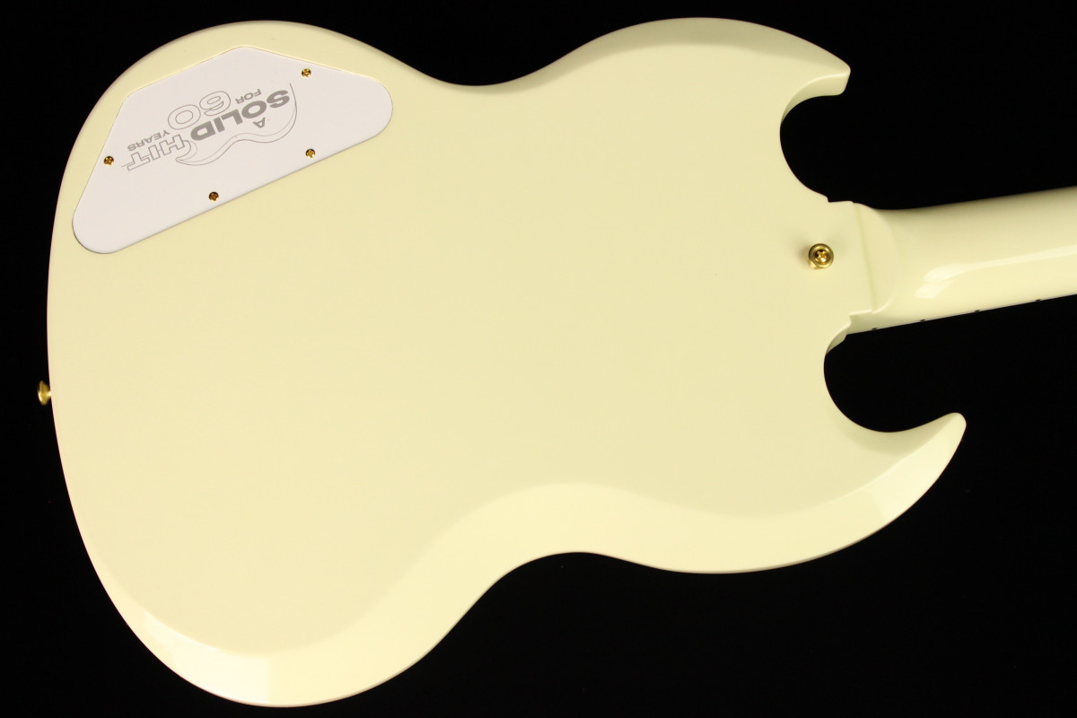 Featuring a fast ’61 Thin-profile neck, a Plek’d-to-perfection Indian rosewood fretboard, a trio of vintage-voiced Custombucker pickups, a period-correct Sideways Vibrola tailpiece, and elegant aged gold hardware, the 60th Anniversary 1961 SG Les Paul Custom VOS gives you flawless modern playability, optimized vintage sonics, and the classic visuals of an iconic guitar that rocked the world.