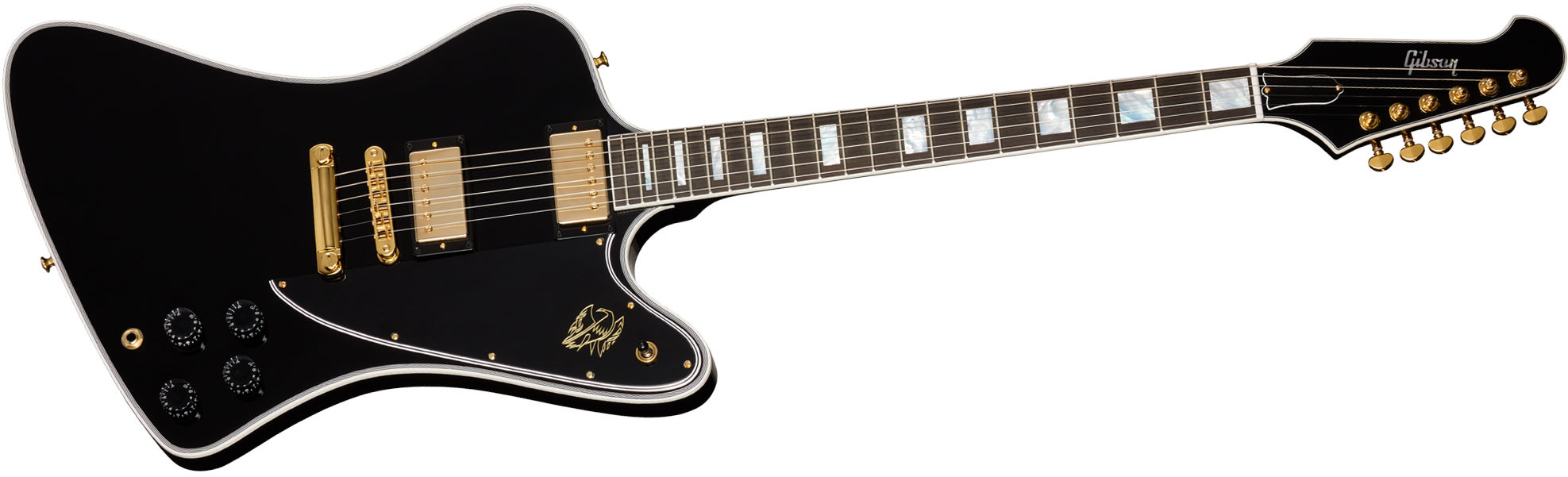 Completing the setup is a Tune-O-Matic™ bridge with a Stop Bar tailpiece and Grover® tuners, elements that ensure tuning stability and impeccable intonation. The gold hardware, multi-layer black pickguard with the Firebird logo, and the three-layer bound headstock with a mother-of-pearl Gibson logo define a sophisticated and distinctive aesthetic.