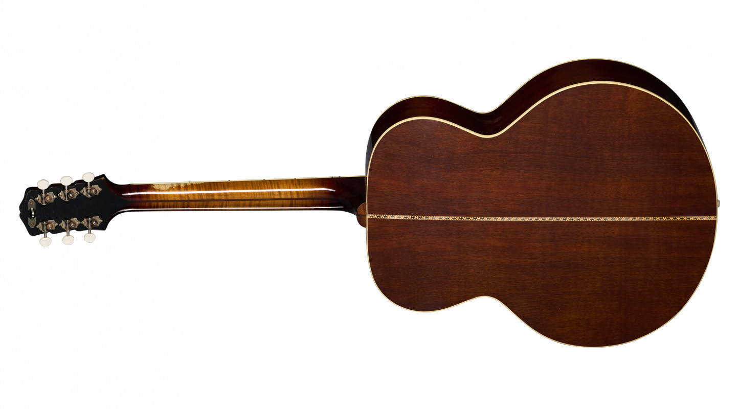 The top is crafted from "Thermally Aged" spruce, paired with solid mahogany back and sides, creating a warm and rich sound, further enhanced by the scalloped X-bracing, which gives the tone an authentically vintage character.