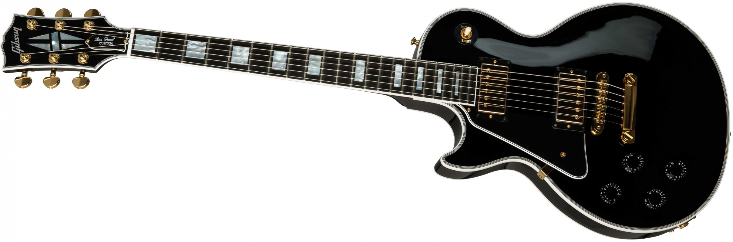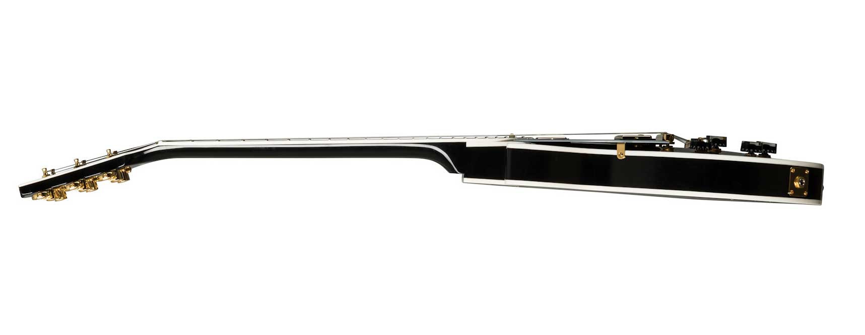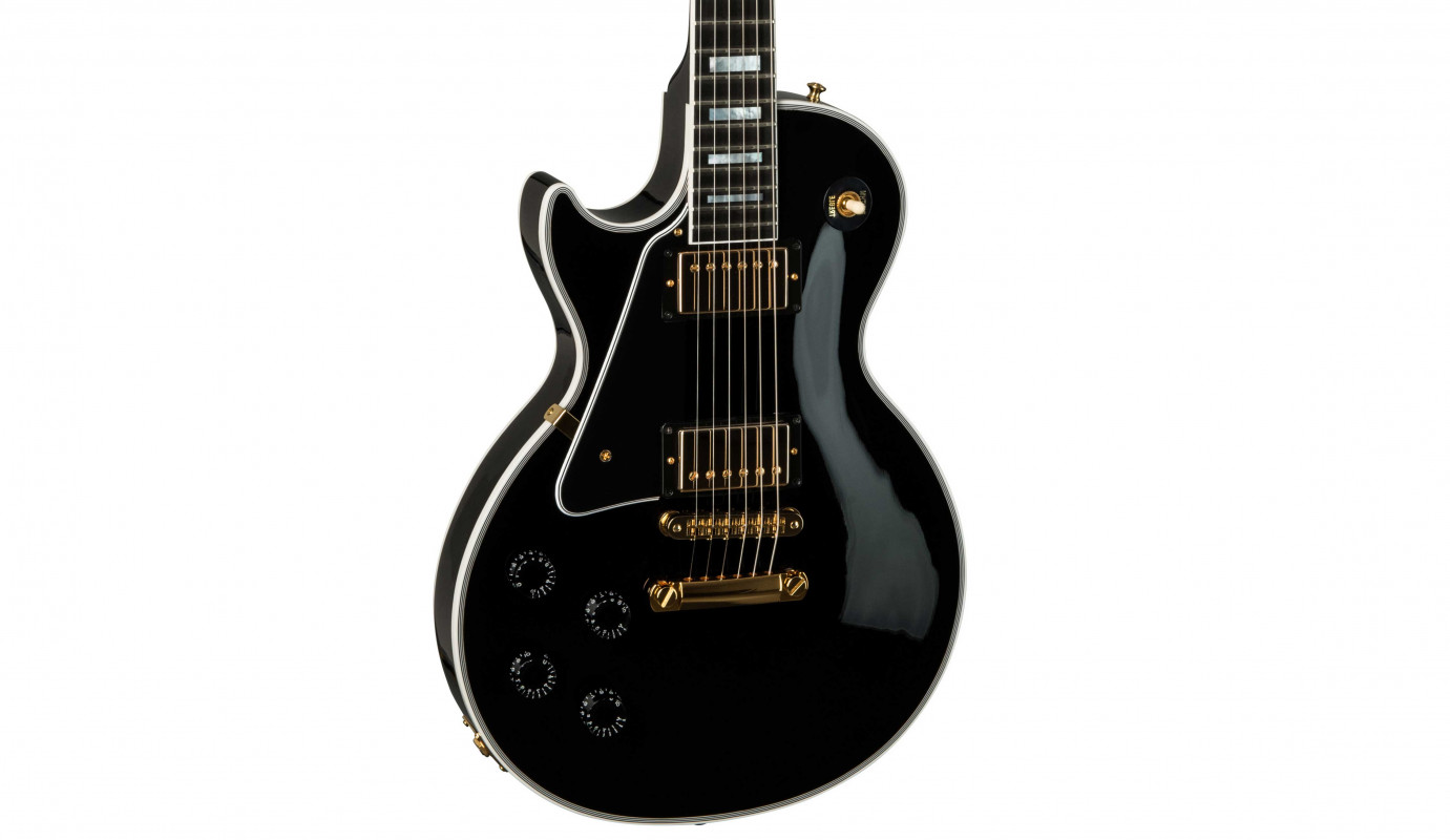 Today’s Les Paul Custom is based on the model from the mid-1950s, but with several modern appointments. The body is crafted with a hand-carved maple top, which is fitted to a body made from a solid piece of mahogany with strategically routed holes to lessen the weight of the guitar, resulting in a Les Paul with enhanced acoustic qualities and improved resonance. The 24 ¾-inch scale length neck is also made from one solid piece of mahogany then topped by a 22-fret Ebony fingerboard outfitted with pearl block inlays and given Gibson’s traditional "C" profile.
