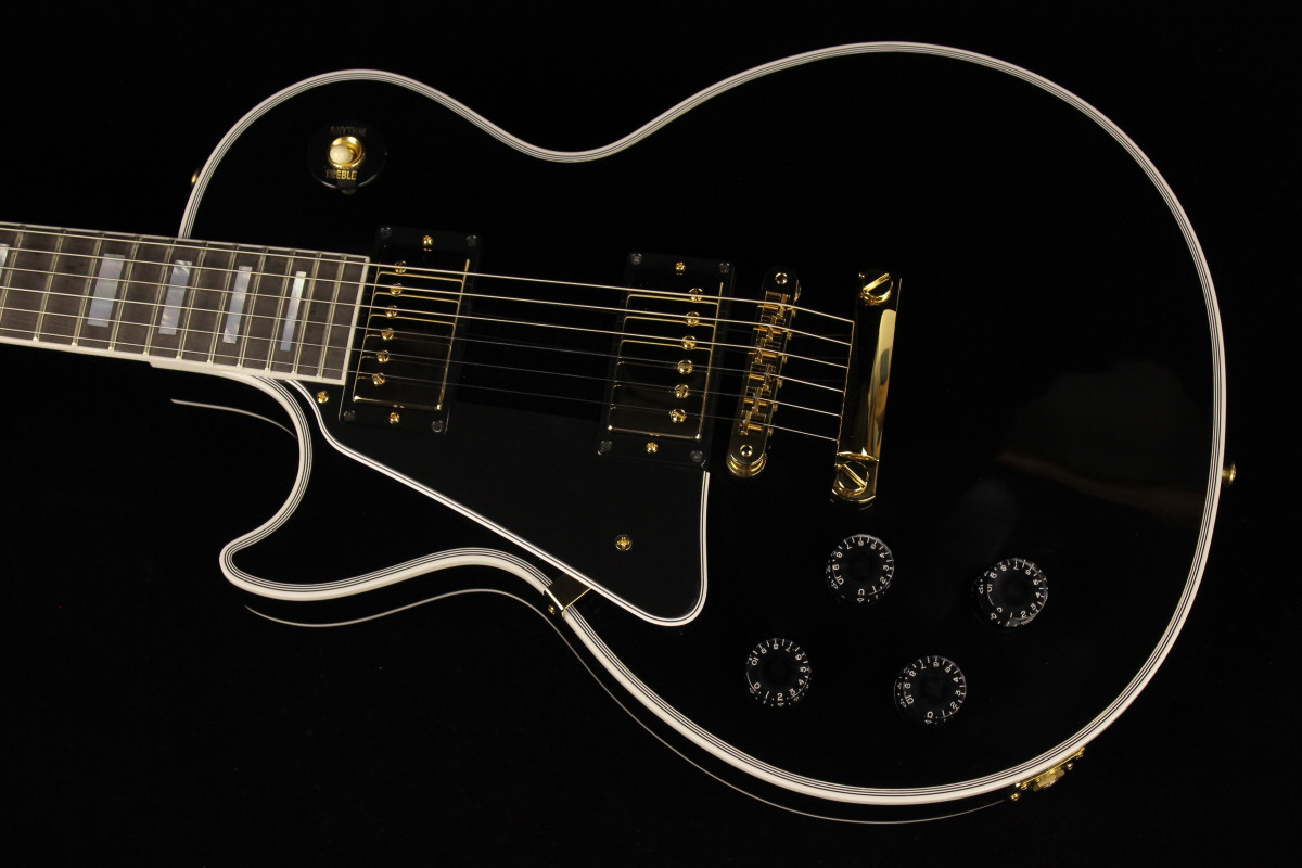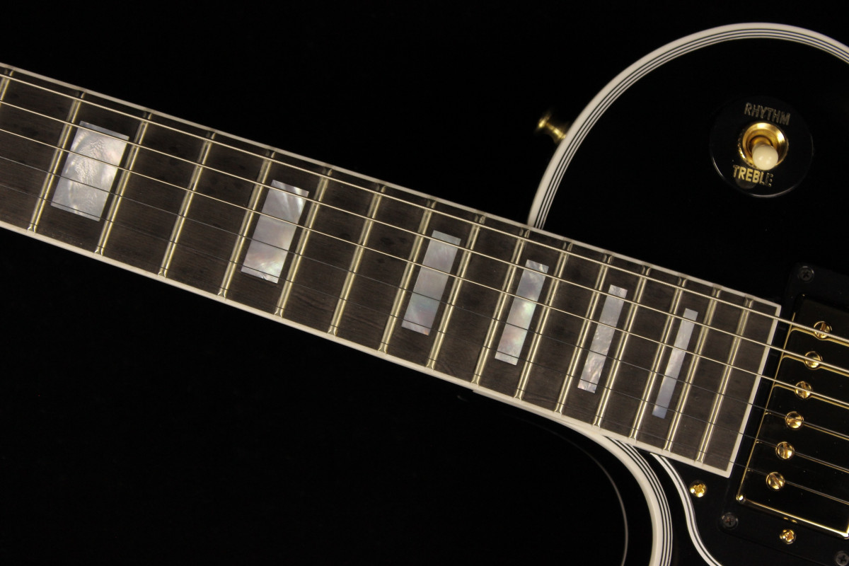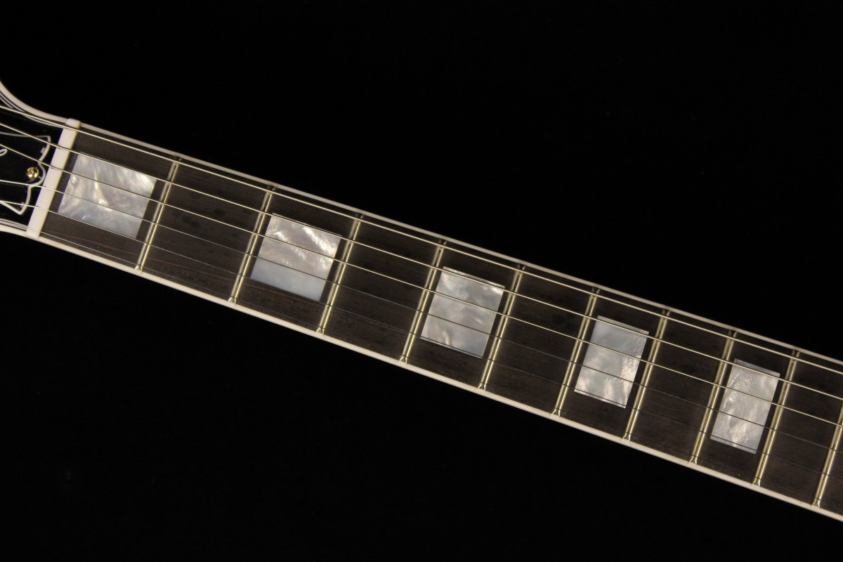 Today’s Les Paul Custom is based on the model from the mid-1950s, but with several modern appointments. The body is crafted with a hand-carved maple top, which is fitted to a body made from a solid piece of mahogany with strategically routed holes to lessen the weight of the guitar, resulting in a Les Paul with enhanced acoustic qualities and improved resonance. The 24 ¾-inch scale length neck is also made from one solid piece of mahogany then topped by a 22-fret Ebony fingerboard outfitted with pearl block inlays and given Gibson’s traditional "C" profile.