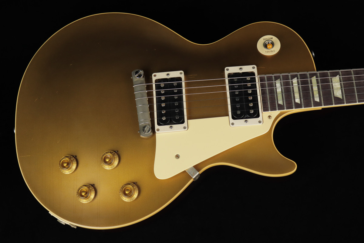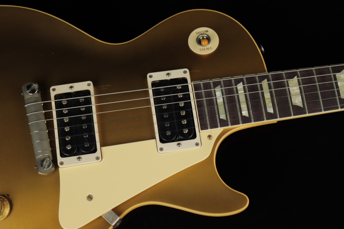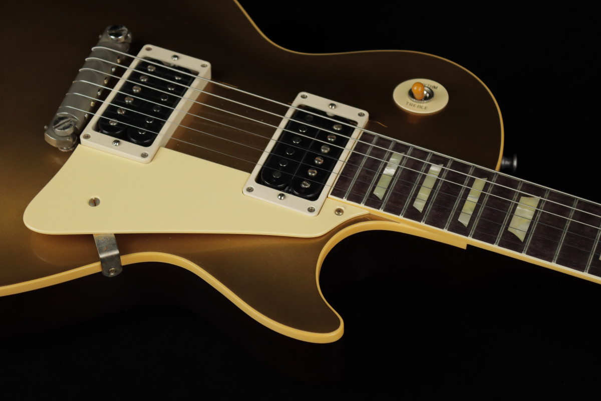 This is a 1954 Les Paul Standard featuring humbuckers and a wraparound bridge, delivering powerful attack and endless sustain.