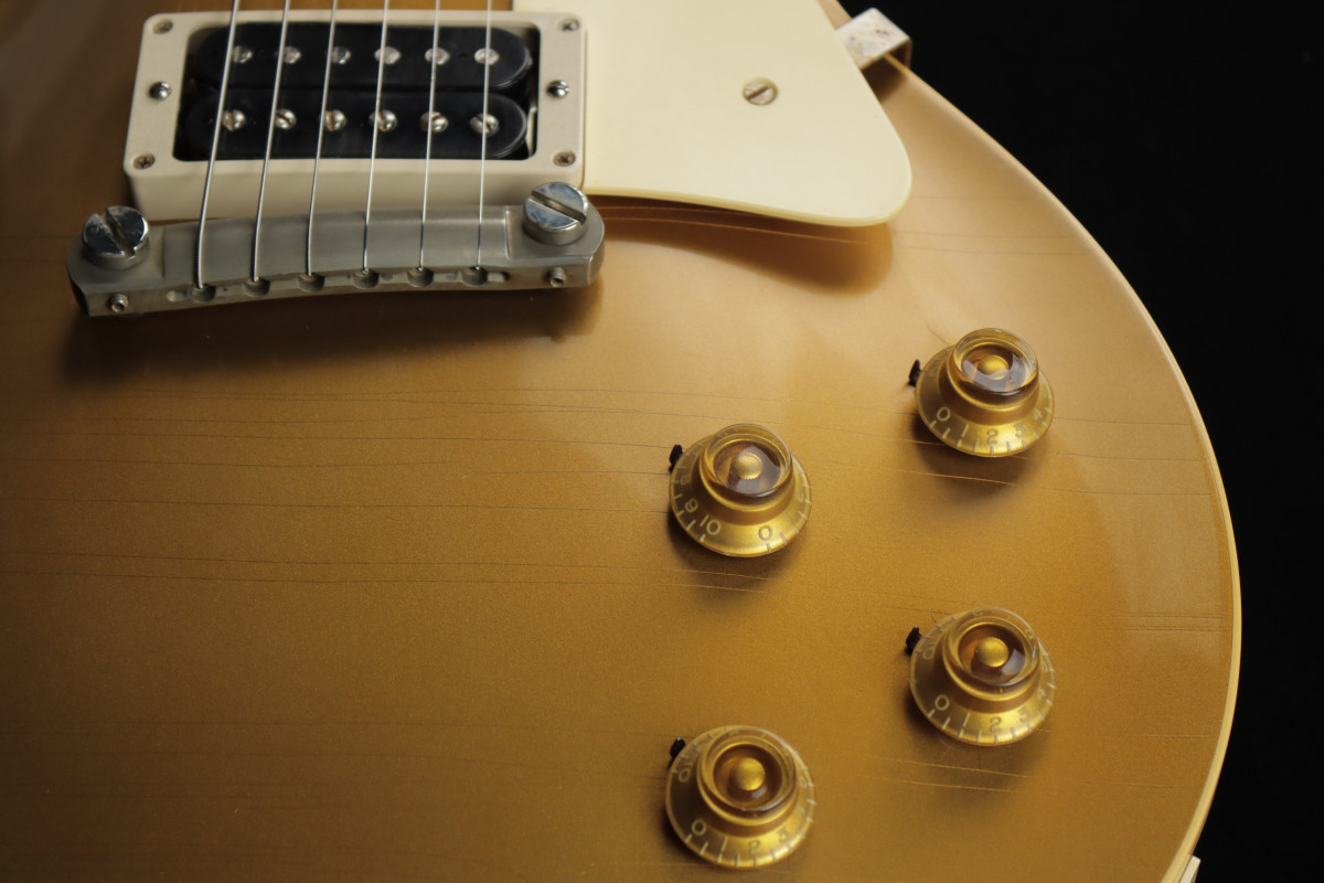 An instrument inspired by one of the wonderful guitars listed in the book "Slash - The Collection," specifically the one mentioned on page 298, the so-called "Olive Drab Wraptail," now presented in another historic color used by Slash, the Goldtop.