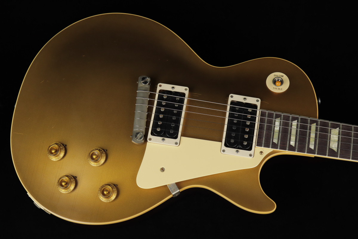 Essentially, it is an instrument with a 1954 setup, featuring a body without weight relief, a maple top, and a mahogany neck with a prominent Chunky "C" profile, but with the addition of a pair of humbuckers!