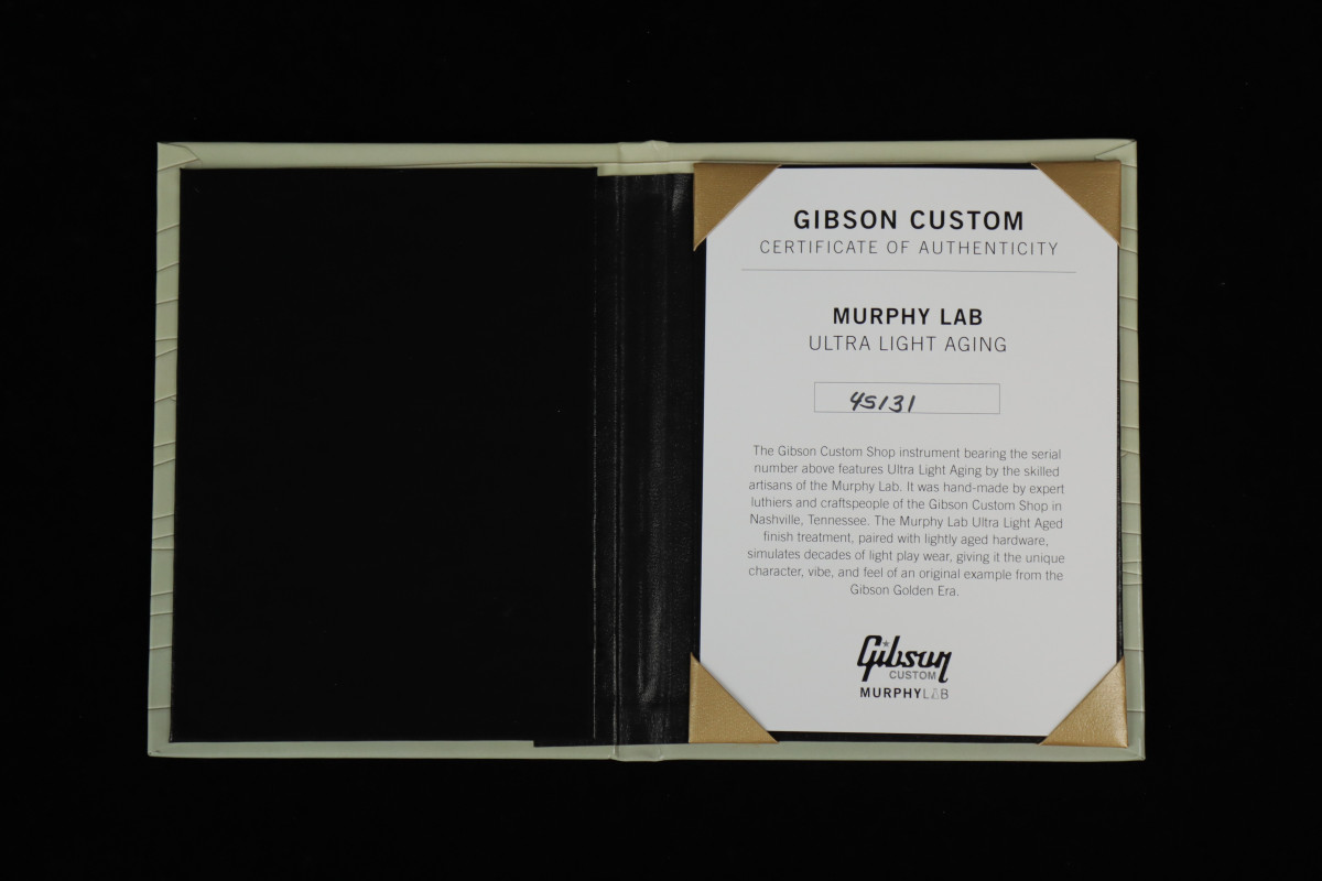 This Gibson Custom Murphy Lab 1954 Les Paul Standard w/ Humbuckers M2M Ultra Light Aged is a special order created through the Made 2 Measure program of the Gibson Custom Shop, modeled after a 1954 Les Paul Standard with humbuckers and a wraparound bridge for massive attack and endless sustain.