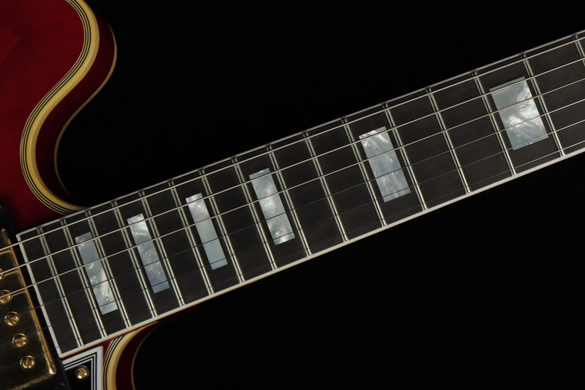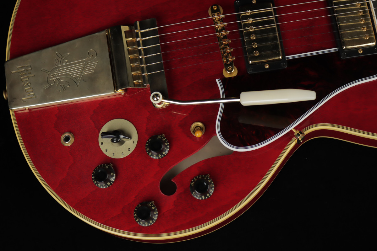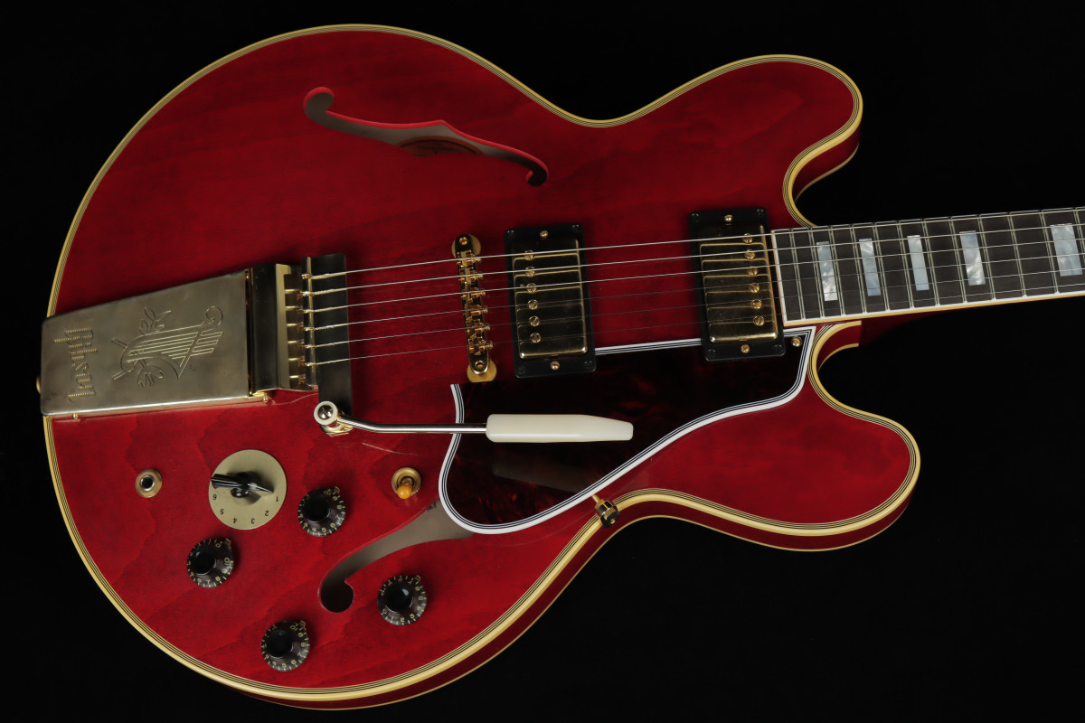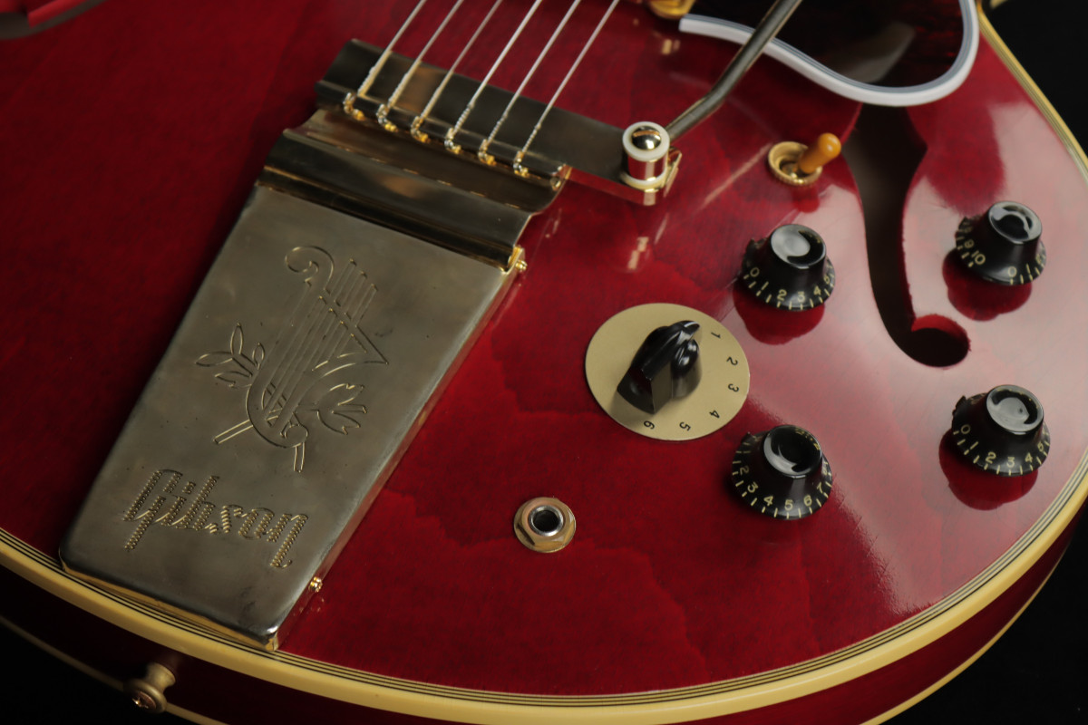 This Gibson Custom Murphy Lab 1959 ES-355 Reissue Varitone with Maestro Ultra Light Aged in Cherry finish has been crafted as a special order through the Made 2 Measure program.