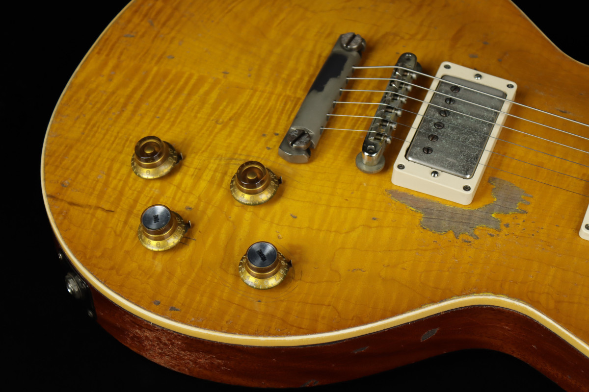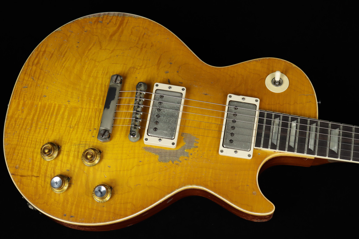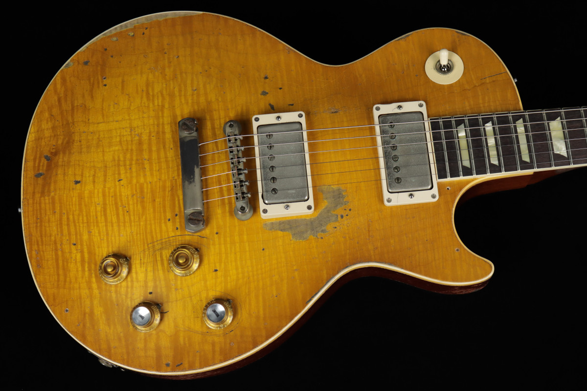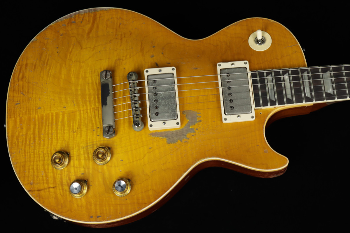 Now owned by Kirk Hammett, Greeny has passed through the hands of three legendary guitarists. Its distinctive sound is partly from the out-of-phase middle switch position due to the neck pickup’s reversed magnetic polarity. The Kirk Hammett "Greeny" 1959 Les Paul Standard from the Gibson Custom Shop is artfully aged to match the original by the Murphy Lab and was inspired by this legendary guitar.