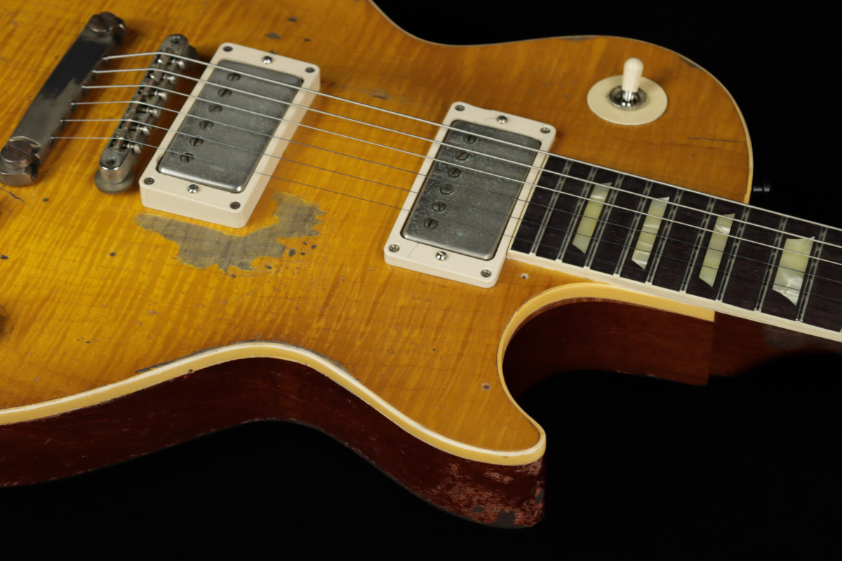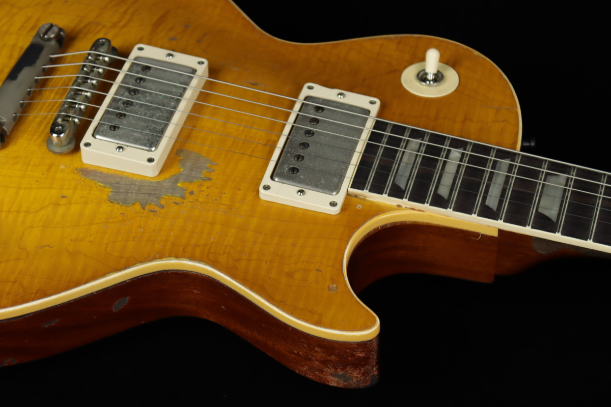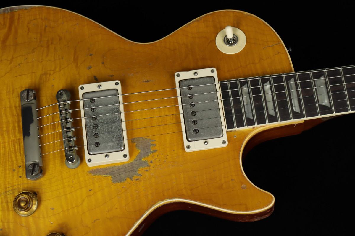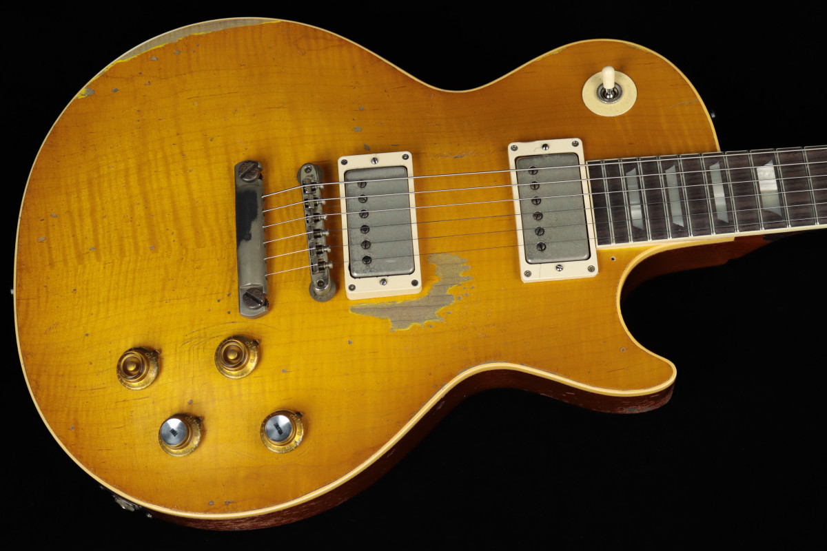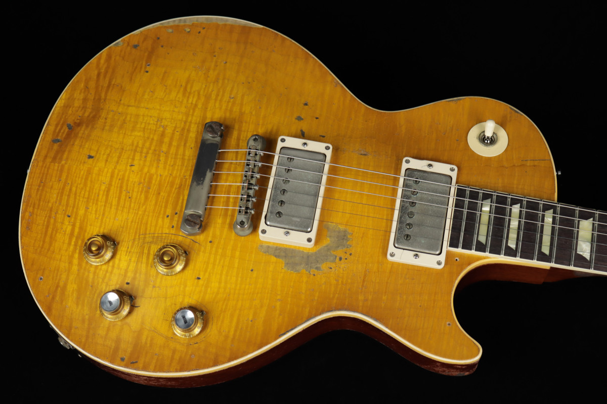 Now owned by Kirk Hammett, Greeny has passed through the hands of three legendary guitarists. Its distinctive sound is partly from the out-of-phase middle switch position due to the neck pickup’s reversed magnetic polarity. The Kirk Hammett "Greeny" 1959 Les Paul Standard from the Gibson Custom Shop is artfully aged to match the original by the Murphy Lab and was inspired by this legendary guitar.