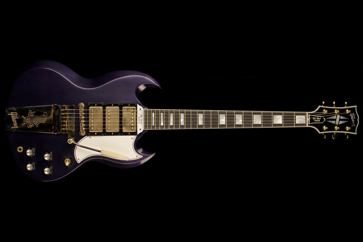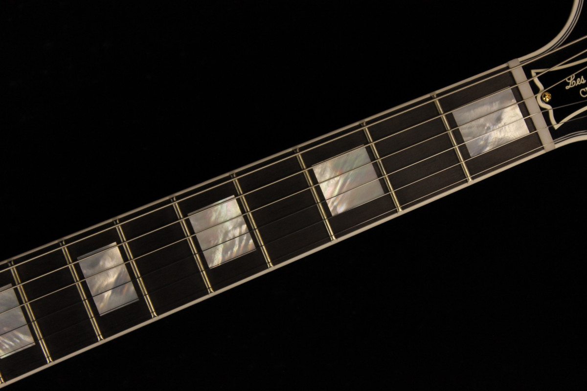 Technically speaking, it is a replica of the 1963 Les Paul / SG Custom model, characterized by a set of 3 humbucker pickups, a 1960 Slim Taper profile neck, an ebony fingerboard with "Block" inlays.
