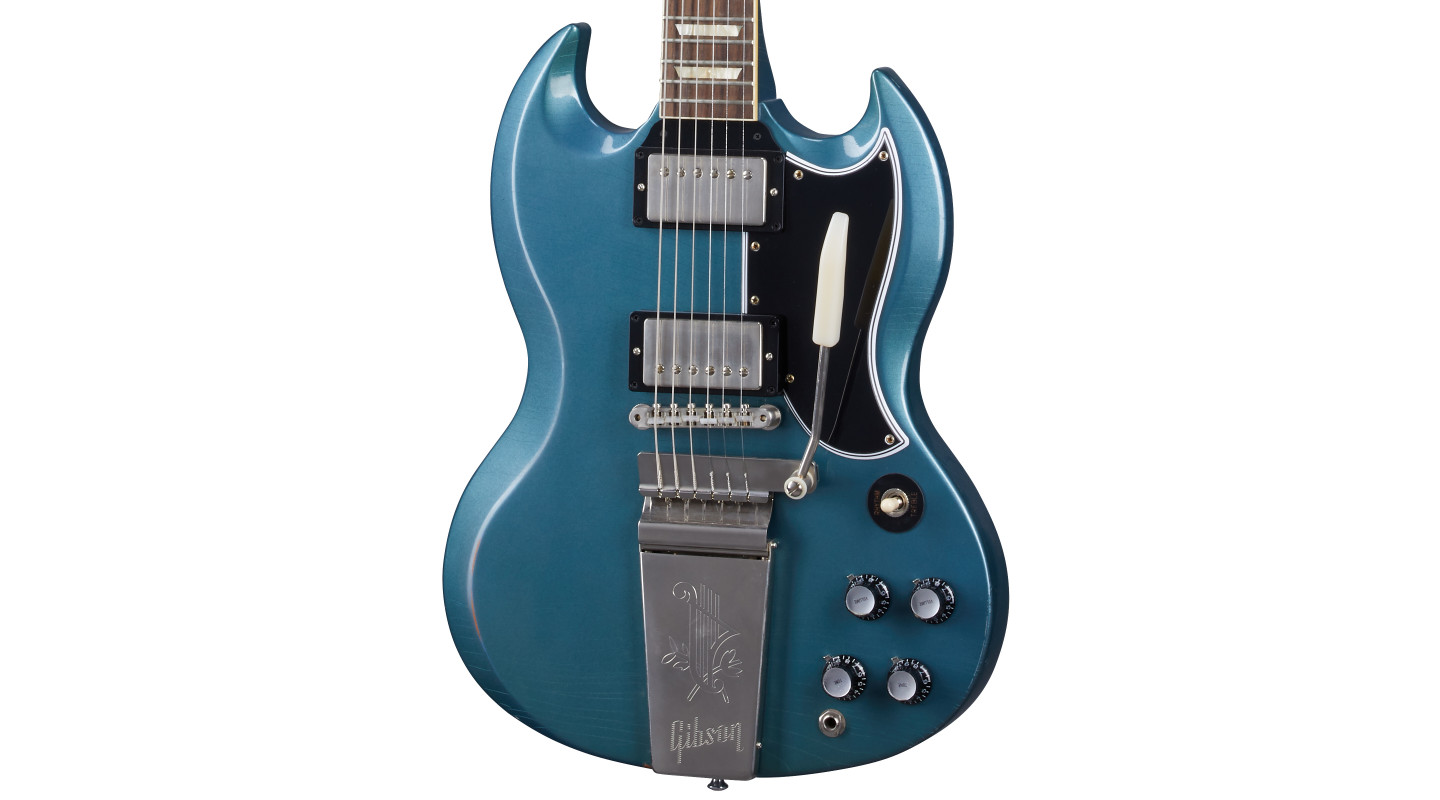 In particular, this Gibson Custom Murphy Lab 1964 SG Standard Reissue w/Maestro Vibrola Light Aged faithfully reproduces the 1964 SG Standard, the year the Maestro™ Vibrola was introduced.