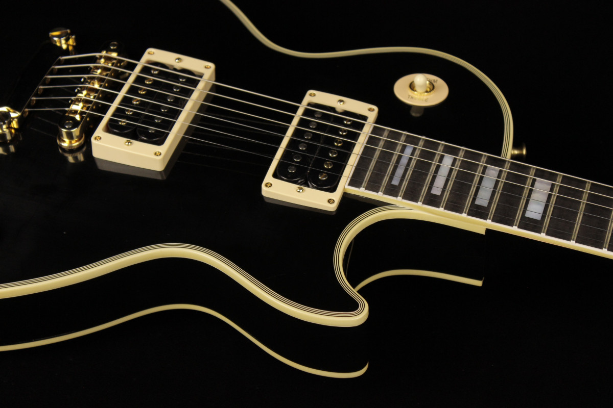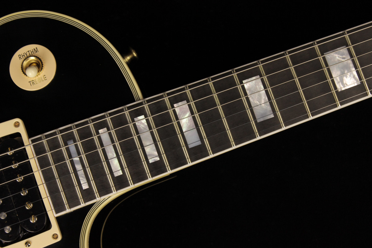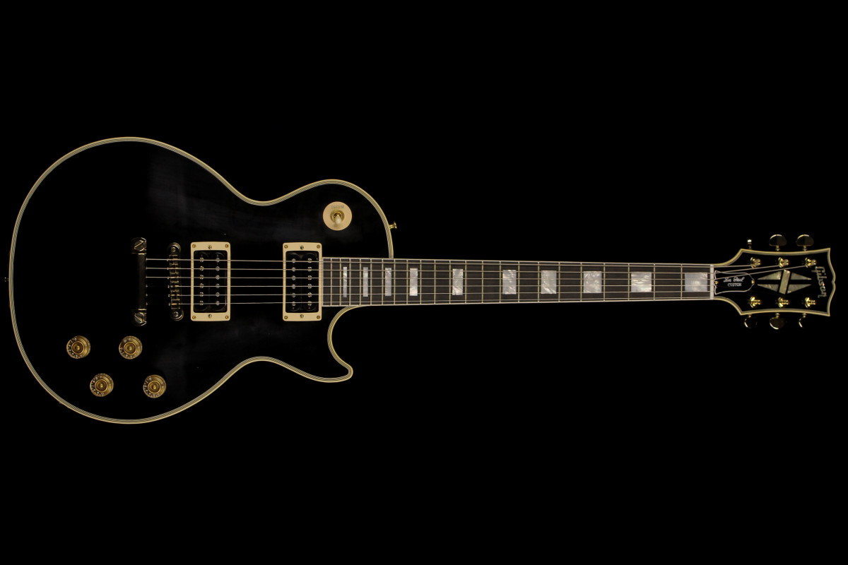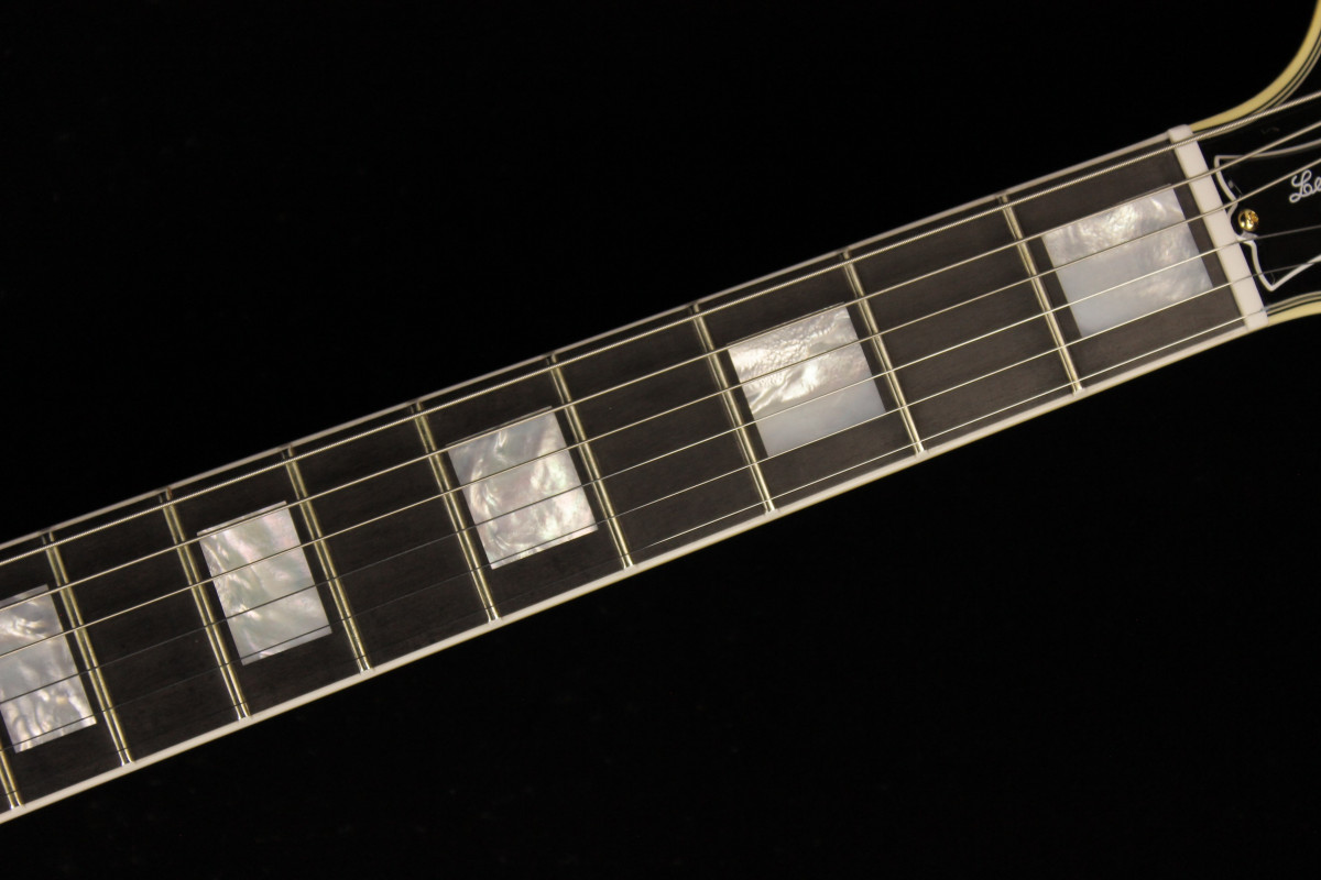Today’s Les Paul Custom is based on the model from the mid-1950s, but with several modern appointments. The body is crafted with a hand-carved maple top, which is fitted to a body made from a solid piece of mahogany with strategically routed holes to lessen the weight of the guitar, resulting in a Les Paul with enhanced acoustic qualities and improved resonance. The 24 ¾-inch scale length neck is also made from one solid piece of mahogany then topped by a 22-fret Ebony fingerboard outfitted with pearl block inlays and given Gibson’s traditional "C" profile.