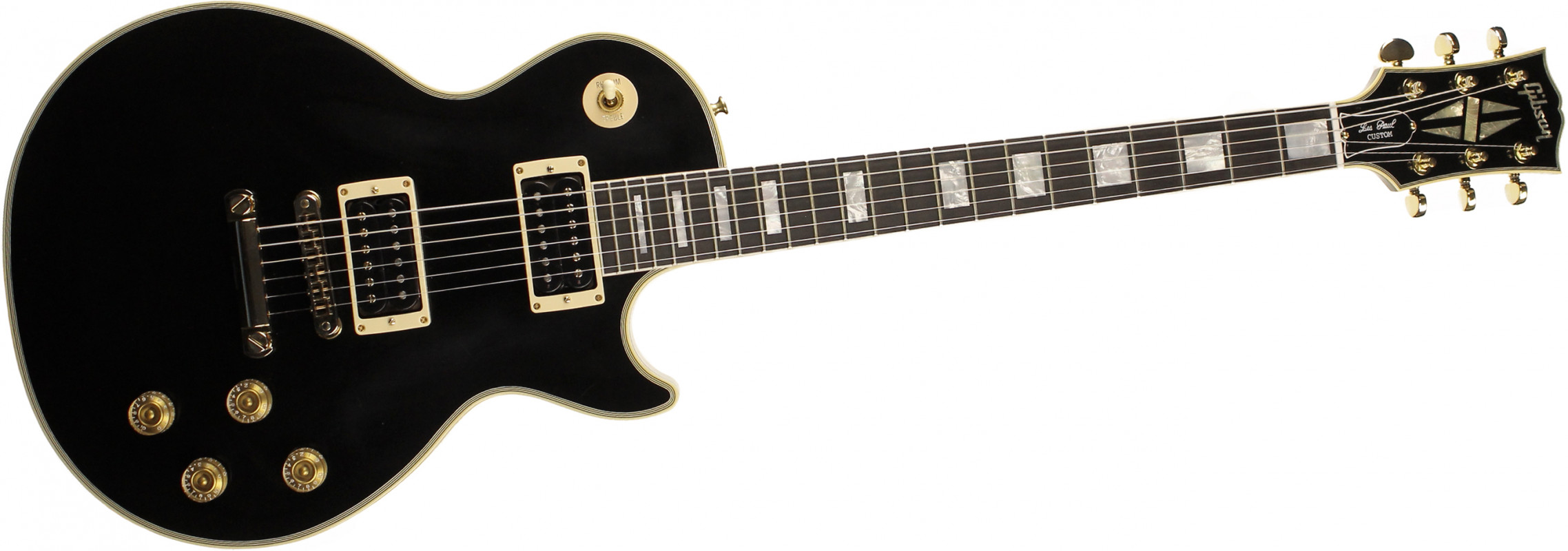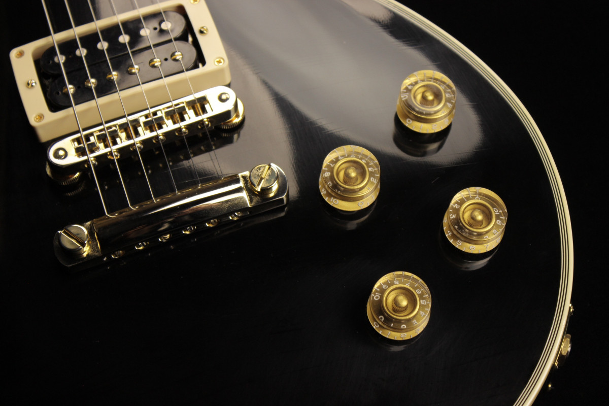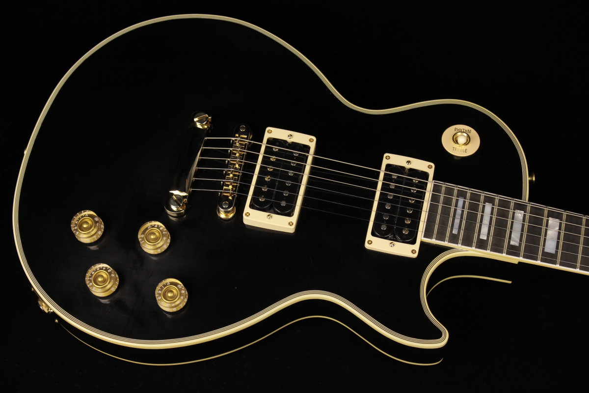 Today’s Les Paul Custom is based on the model from the mid-1950s, but with several modern appointments. The body is crafted with a hand-carved maple top, which is fitted to a body made from a solid piece of mahogany with strategically routed holes to lessen the weight of the guitar, resulting in a Les Paul with enhanced acoustic qualities and improved resonance. The 24 ¾-inch scale length neck is also made from one solid piece of mahogany then topped by a 22-fret Ebony fingerboard outfitted with pearl block inlays and given Gibson’s traditional "C" profile.