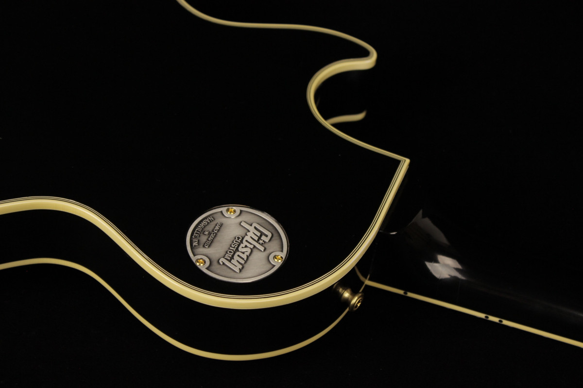 The pickups are a set of Gibson Custombucker Unpotted, the same pickups we currently find on Historic Reissues, able to bring back all the vintage vibe of the original PAF, with a strong personality. Other appointments include Gibson’s legendary Nashville Tune-o-matic bridge and stopbar tailpiece, metal tulip tuners, multi-ply white and black binding on both the top and back, gold hardware and a 1 11/16” nut width.