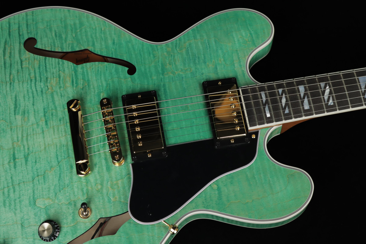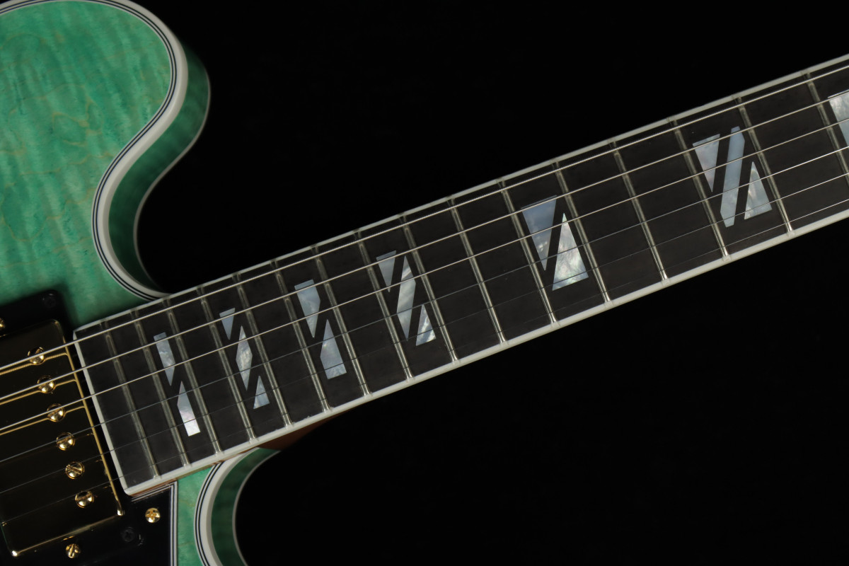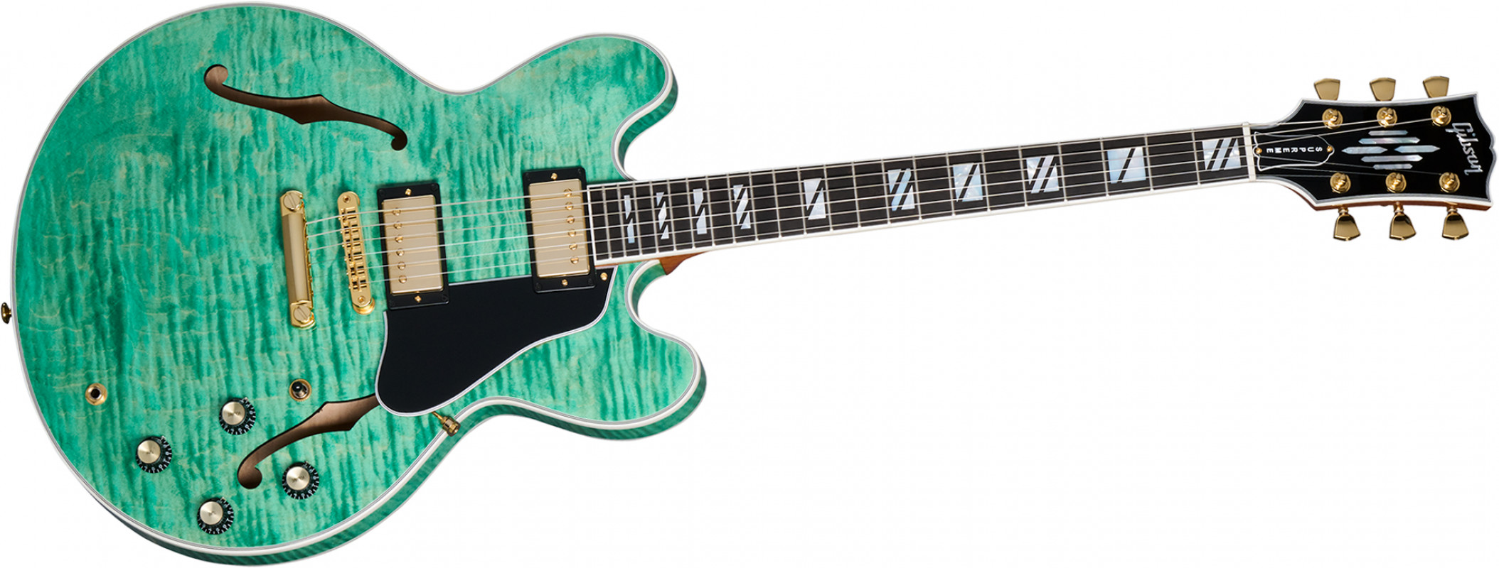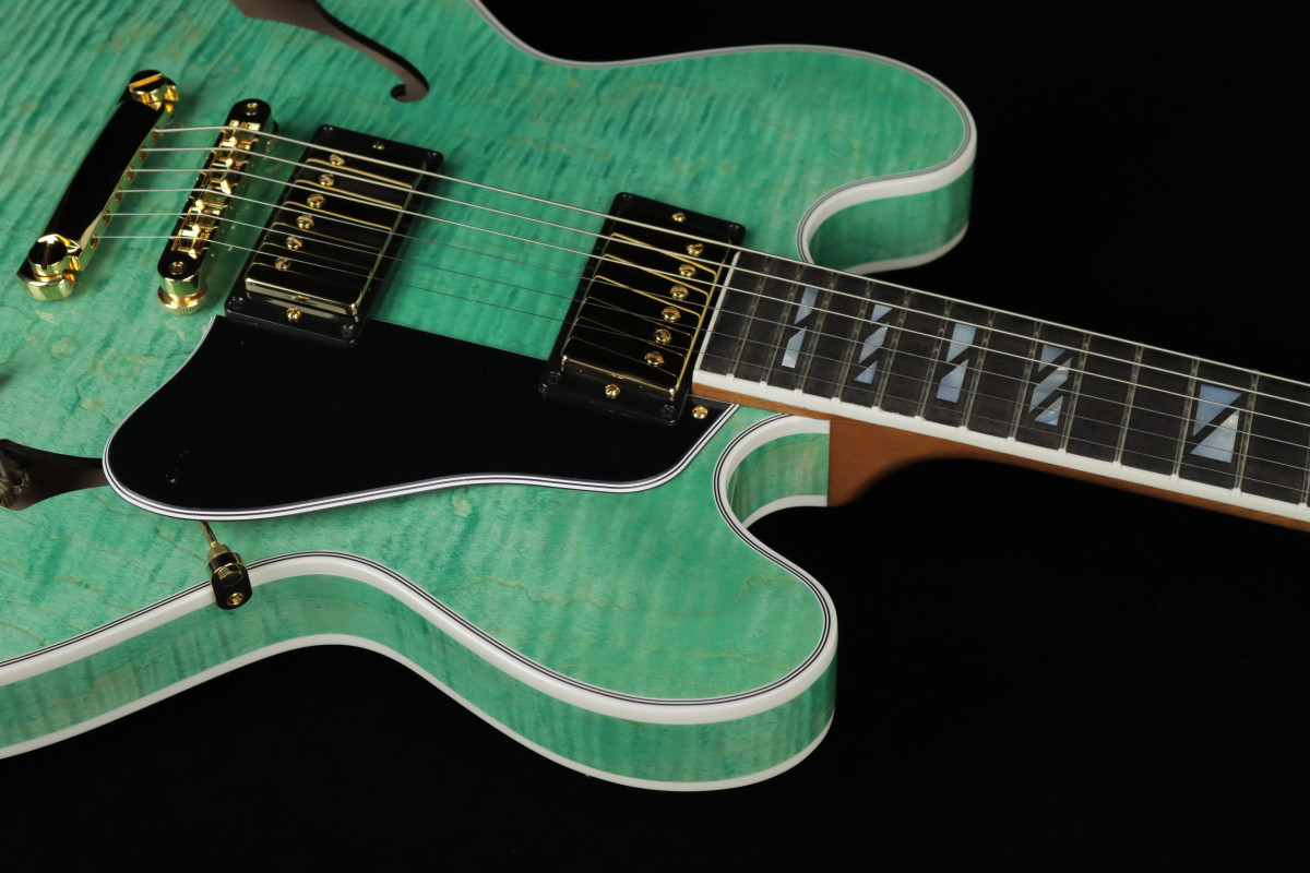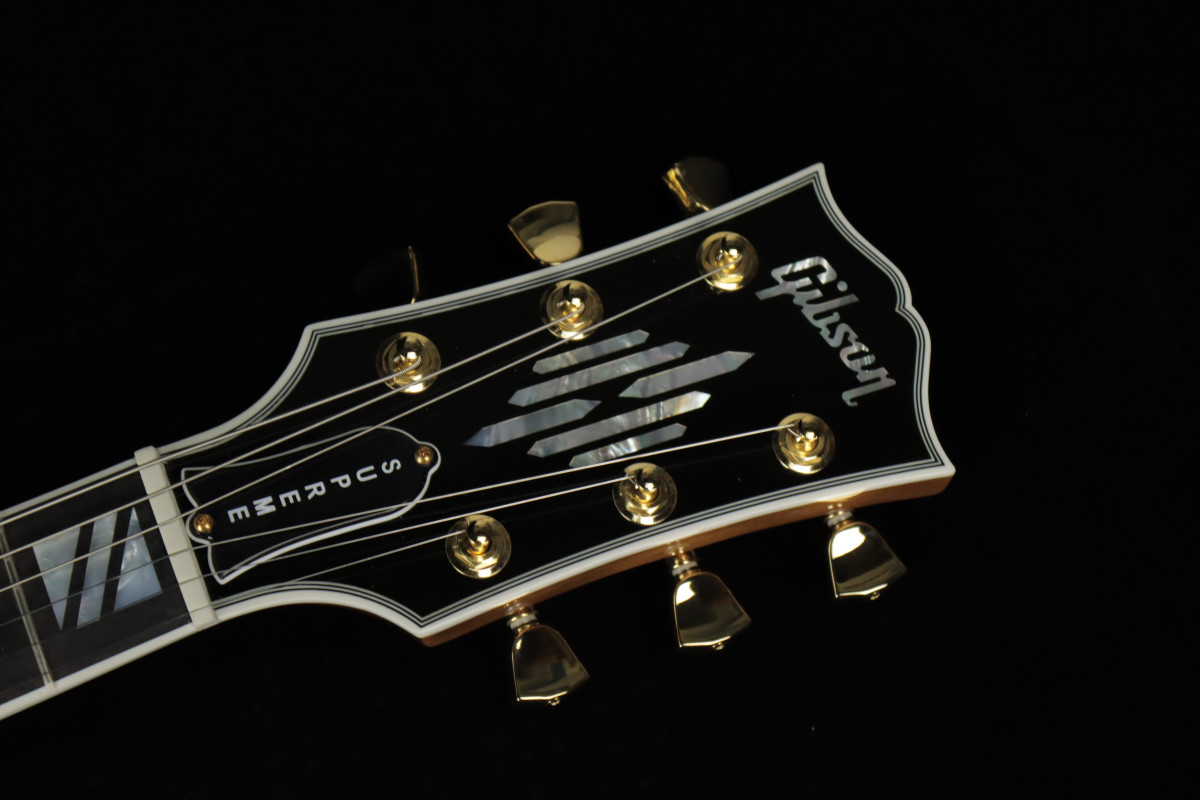 The Gibson ES-335 has always been known as an exceptionally versatile guitar. Regardless of your stylistic preferences or what the gig calls for, it can cover it with aplomb. The ES Supreme expands on that legendary versatility and adds features that take the ES™ to new heights of beauty, including a 3-ply body with a AAA figured maple top, Super Split Block mother-of-pearl neck inlays, gold hardware, and a striking new mother-of-pearl headstock inlay inspired by a design from the 1940s that was discovered in the Gibson archives.