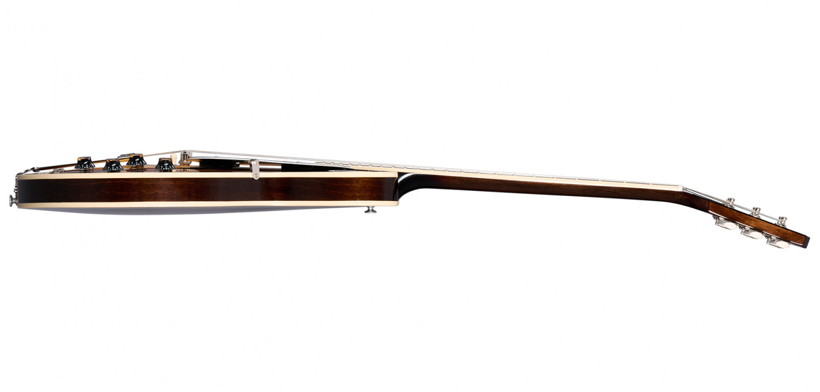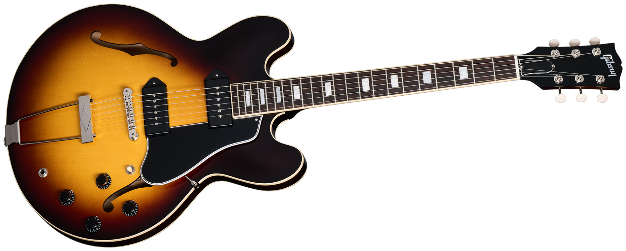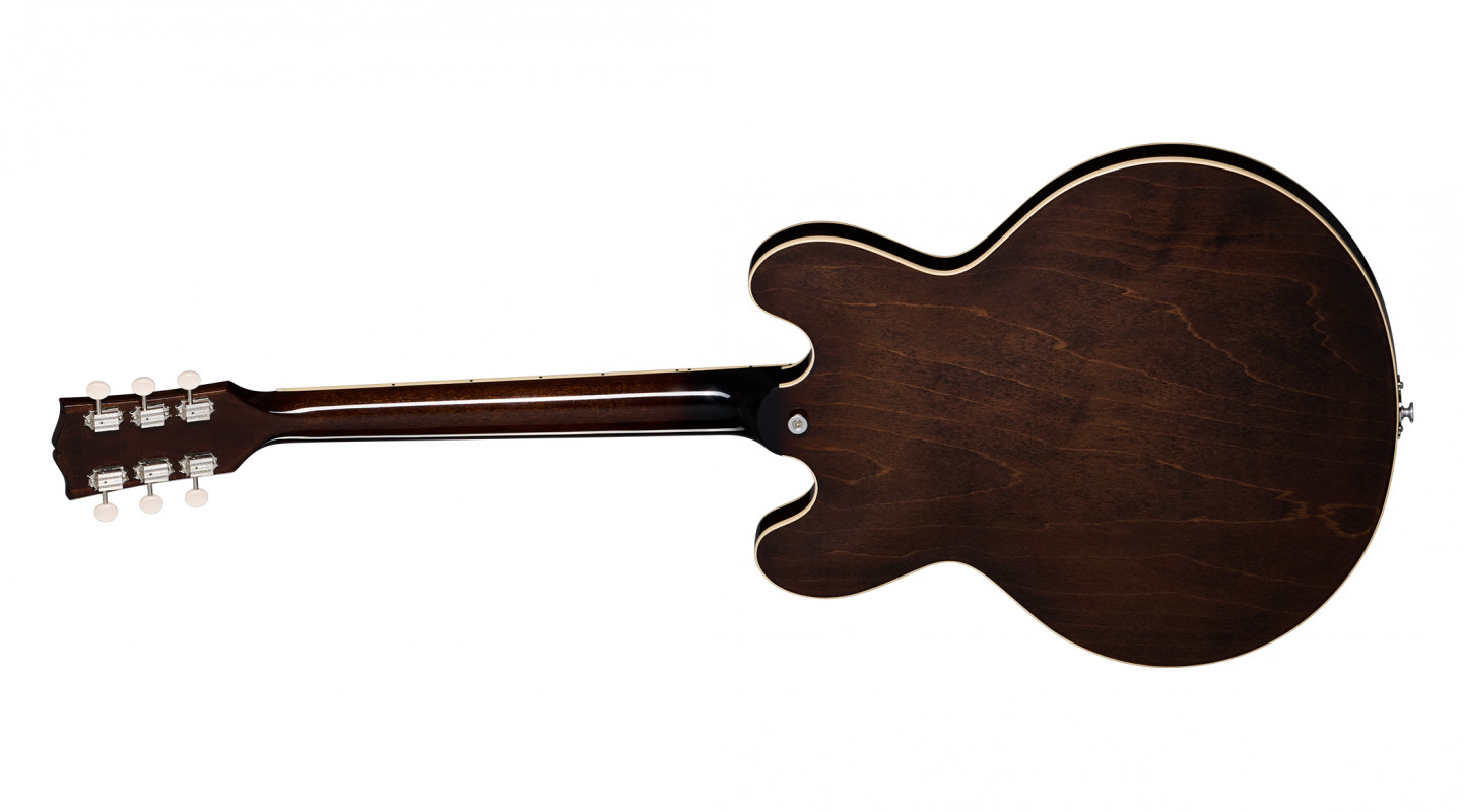 The 12" fretboard radius is equally comfortable whether you're playing clean and jangly chords at the first fret or searing lead lines with heavy string bends up high. The trapeze tailpiece adds to the visual and sonic appeal of the ES-330, while the fully adjustable ABR-1 bridge ensures spot-on intonation. The Vintage Deluxe tuners feature white buttons for even more visual flair and, along with the Graph Tech nut, help keep this thinline hollowbody solidly in tune.