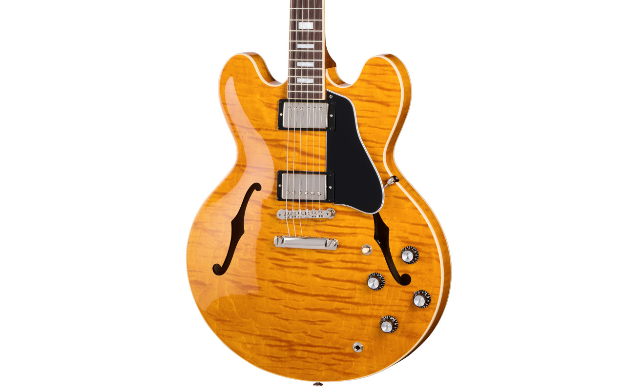 Flaunting a stunning AAA-grade maple top, the Gibson ES-335 Figured is a high-class take on a legendary electric guitar that helped shape the sound of modern music.