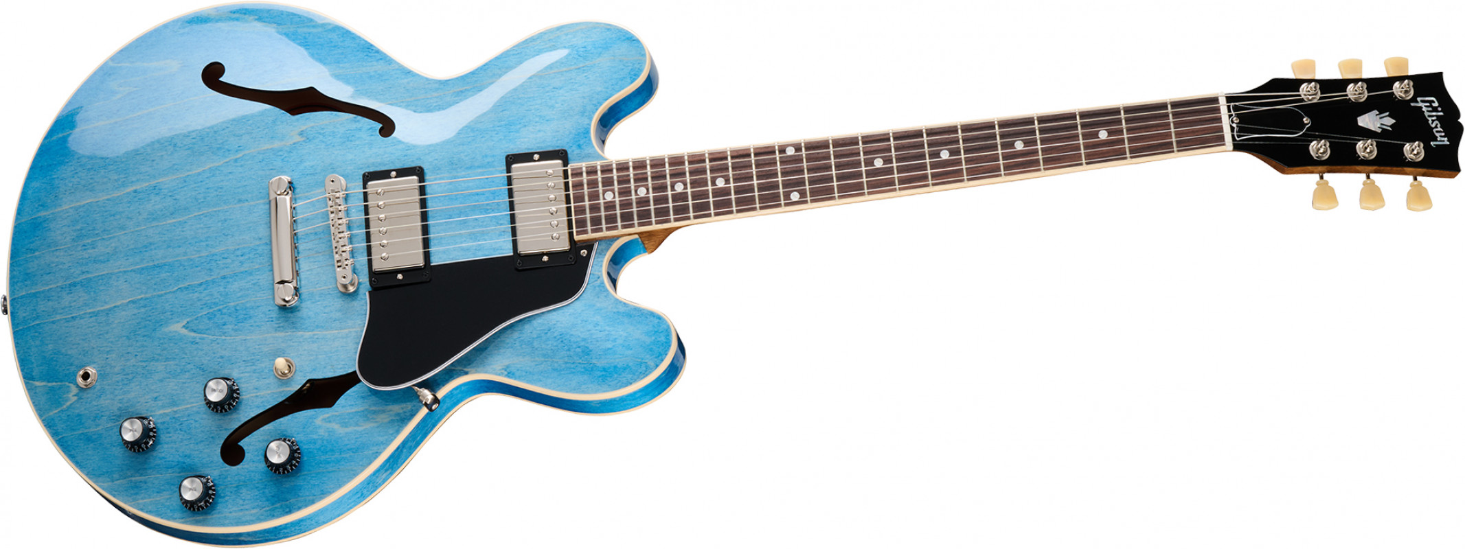 Gibson’s Calibrated T-Type humbucking pickups are paired with the company’s handwired control assembly. The result is the immensely versatile Gibson ES tone that guitarists have craved for over six decades. Precise intonation and tuning stability are provided by Vintage Deluxe tuners with Keystone buttons, paired with a lightweight aluminum ABR-1 bridge and Stopbar tailpiece, anchored by steel thumbwheels and tailpiece studs.