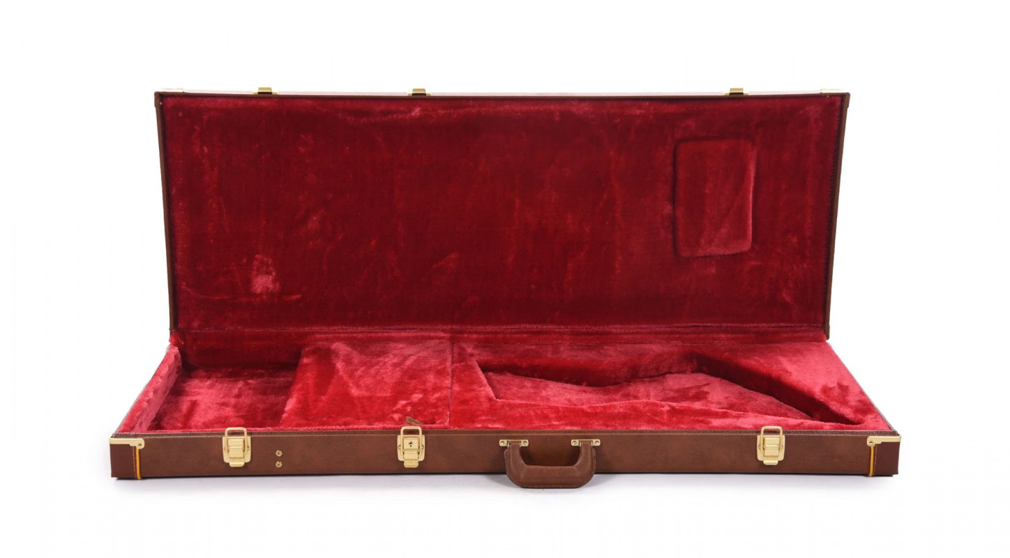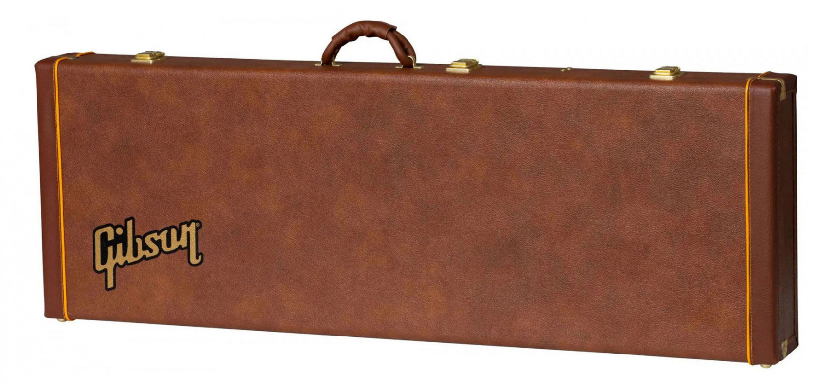 The Gibson Explorer Original Hardshell Case is the original Gibson USA case for the Explorer. Externally, it features a brown covering with a gold Gibson logo. The interior is lined with red plush.