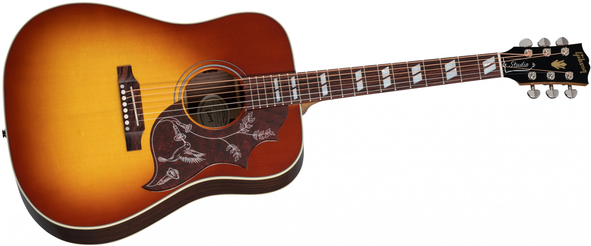 The Hummingbird Studio model continues Gibson's great tradition of producing some of the world's most beloved Square Shoulder Dreadnought models, such as the Hummingbird, Dove, and Songwriter.