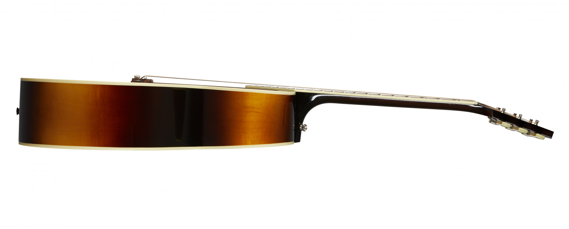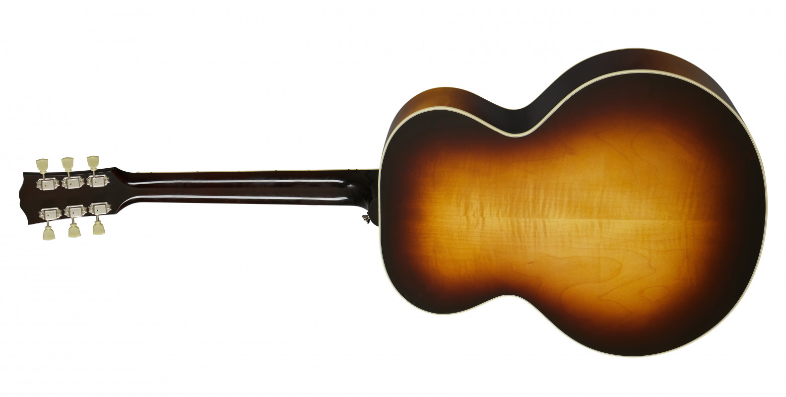 In addition to these fine body tonewoods, a gorgeous mahogany neck with rosewood fingerboard on the J-185 offers players impeccable response and playability. And when you are ready to plug this gorgeous instrument in, an LR Baggs VTC system delivers mind-blowing, authentic amplified acoustic tone.
