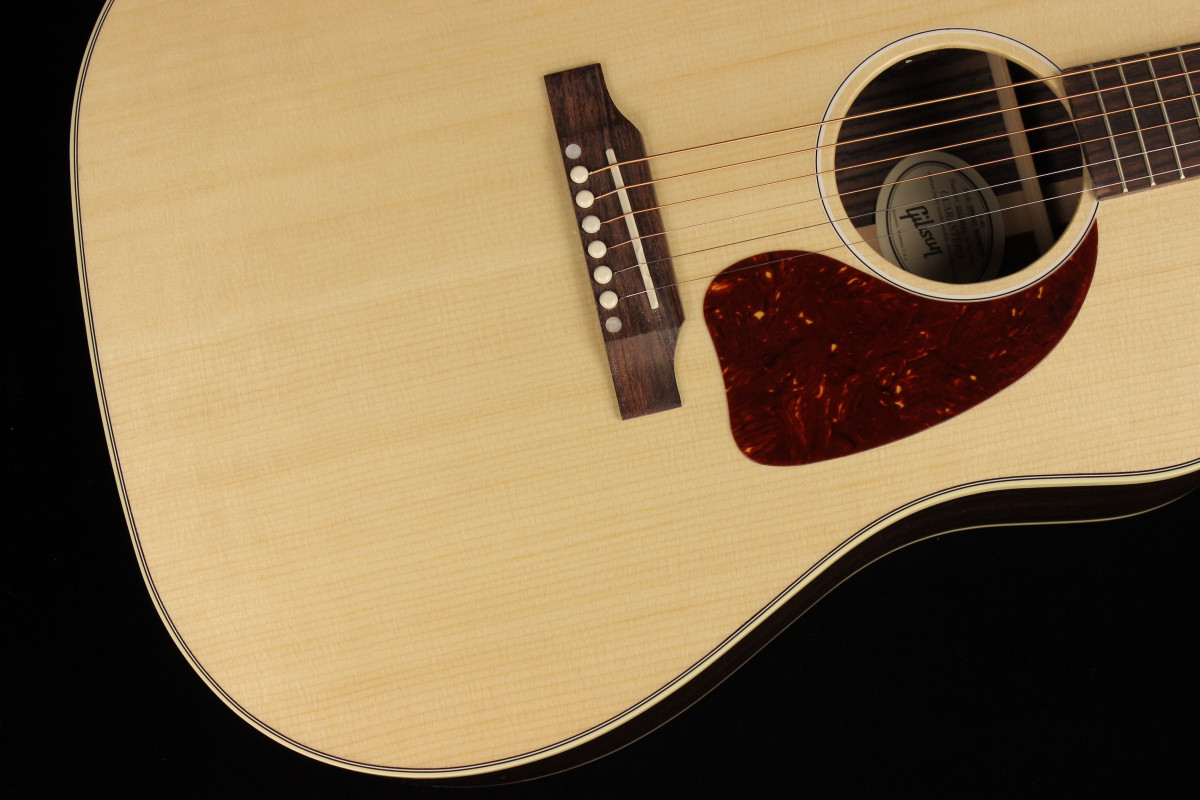 Countless professional guitarists around the world choose Fishman for their acoustic amplification, so you should be happy to see Fishman Sonitone electronics onboard the J-45 Studio Rosewood. The Sonitone system has volume and tone controls mounted right inside the soundhole, making it easy for you to adjust your sound. The guitarists here at Gion Guitars are meticulous about our tone, and we’re huge fans of Fishman’s Sonitone system.