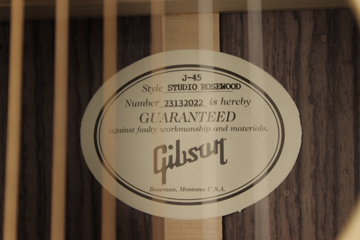 The Gibson Acoustic J-45 Studio Rosewood a classic instrument that's born to perform. This acoustic-electric guitar delivers the round-shoulder, dreadnought-sized projection you'd expect from a full-sized J-45.