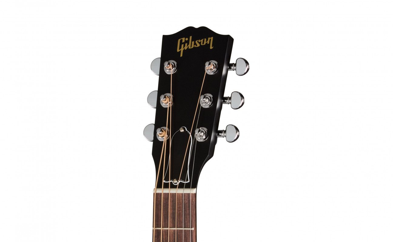 The tone is ideal for fingerstyle playing and blues and works very well for other genres and playing styles, too. The utile neck is attached to the body with a compound dovetail neck-to-body joint, and like all Gibson acoustic guitars, it is affixed with hot hide glue. The neck has a comfortable and fast-playing SlimTaper™ profile, and the rosewood fretboard has a 12” radius and is adorned with simple mother-of-pearl dot inlays and is fitted with 19 standard frets. The closed slot rectangular rosewood bridge is equipped with a TUSQ® saddle, and the nut and bridge pins are also TUSQ. Smooth turning Grover® Mini Rotomatic® tuners ensure solid tuning stability.