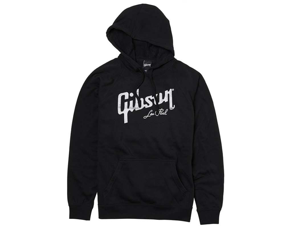 A traditional hoodie with a front pocket featuring the classic Gibson logo and Les Paul's signature. 52% cotton, 48% polyester.
