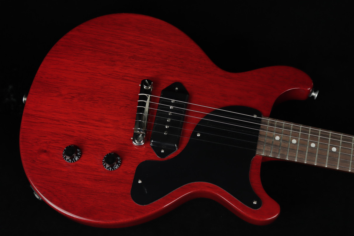 The Gibson Les Paul Junior Double Cut is directly derived from the legendary Les Paul Junior of 1954, which was originally designed as an accessible "student" model but built with the same care and quality as Gibson's professional models. Intended to offer simplicity, reliability, and powerful sound, the Junior quickly became an icon of rock music due to its straightforward character and the distinctive voice of the P-90 pickup.